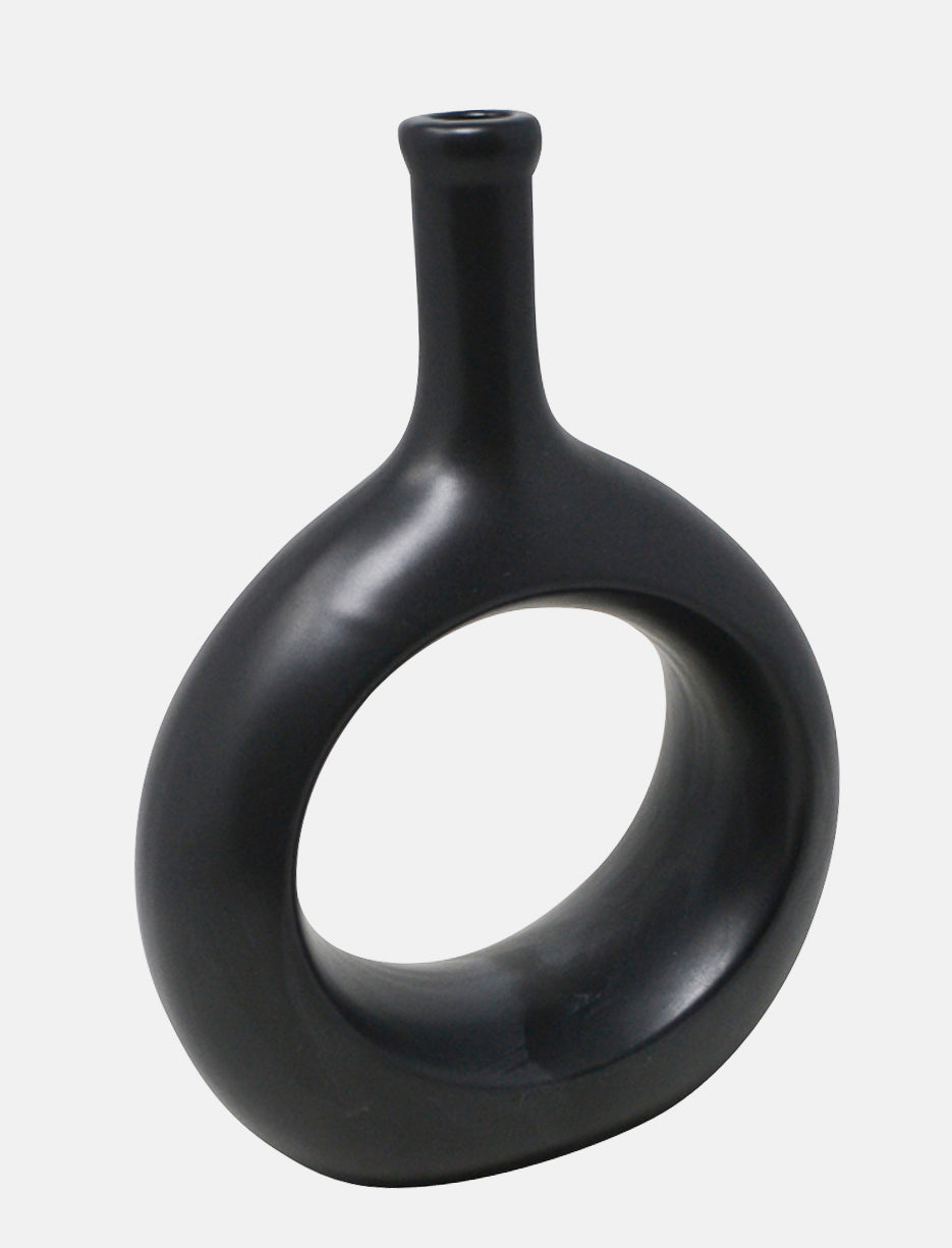 A sculptural silhouette that catches the eye. This black ceramic vase makes a statement, even without flowers!