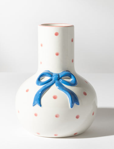 Polka Dot Ceramic Vase with Bow