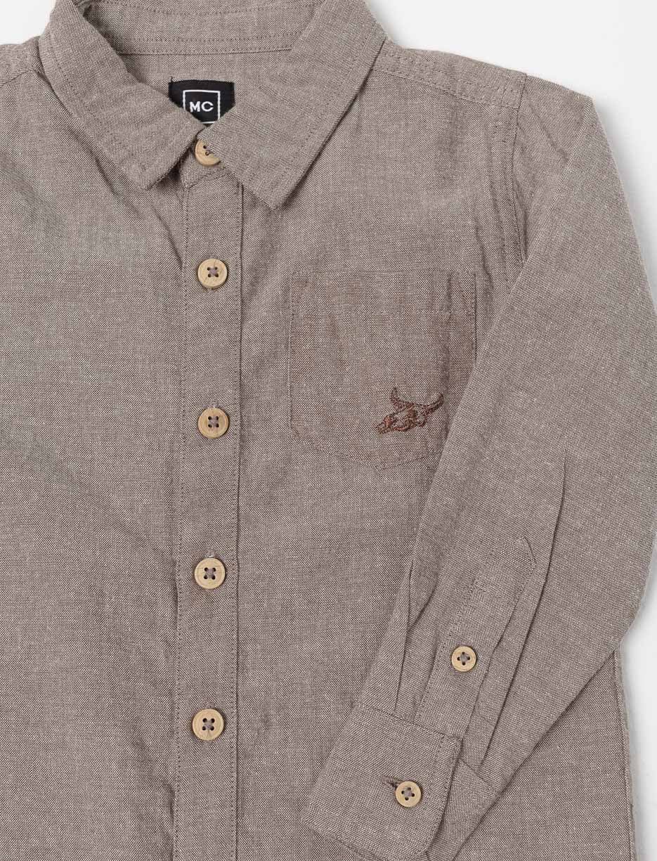 This button-up long-sleeve shirt with a handy pocket blends comfort and style. Perfect for keeping your boy looking sharp during his everyday activities.