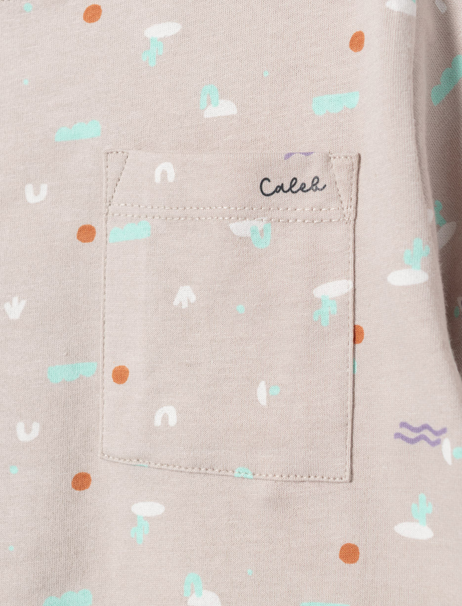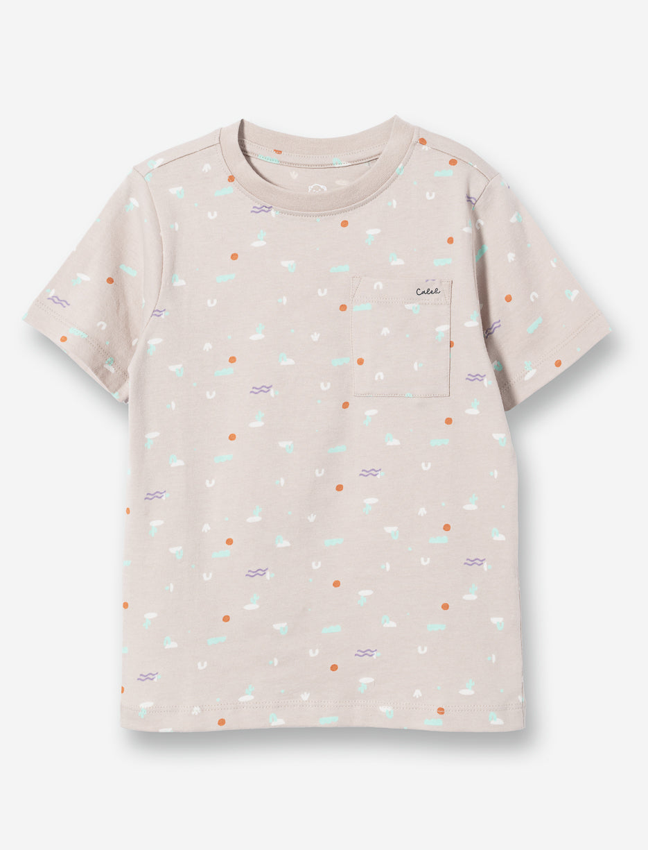 This boys' t-shirt combines style and practicality. Short sleeves and a round neck offer optimal comfort, while the adorable all-over design appeals to children. The chest pocket adds a functional touch. Ideal for playtime and everyday adventures.
