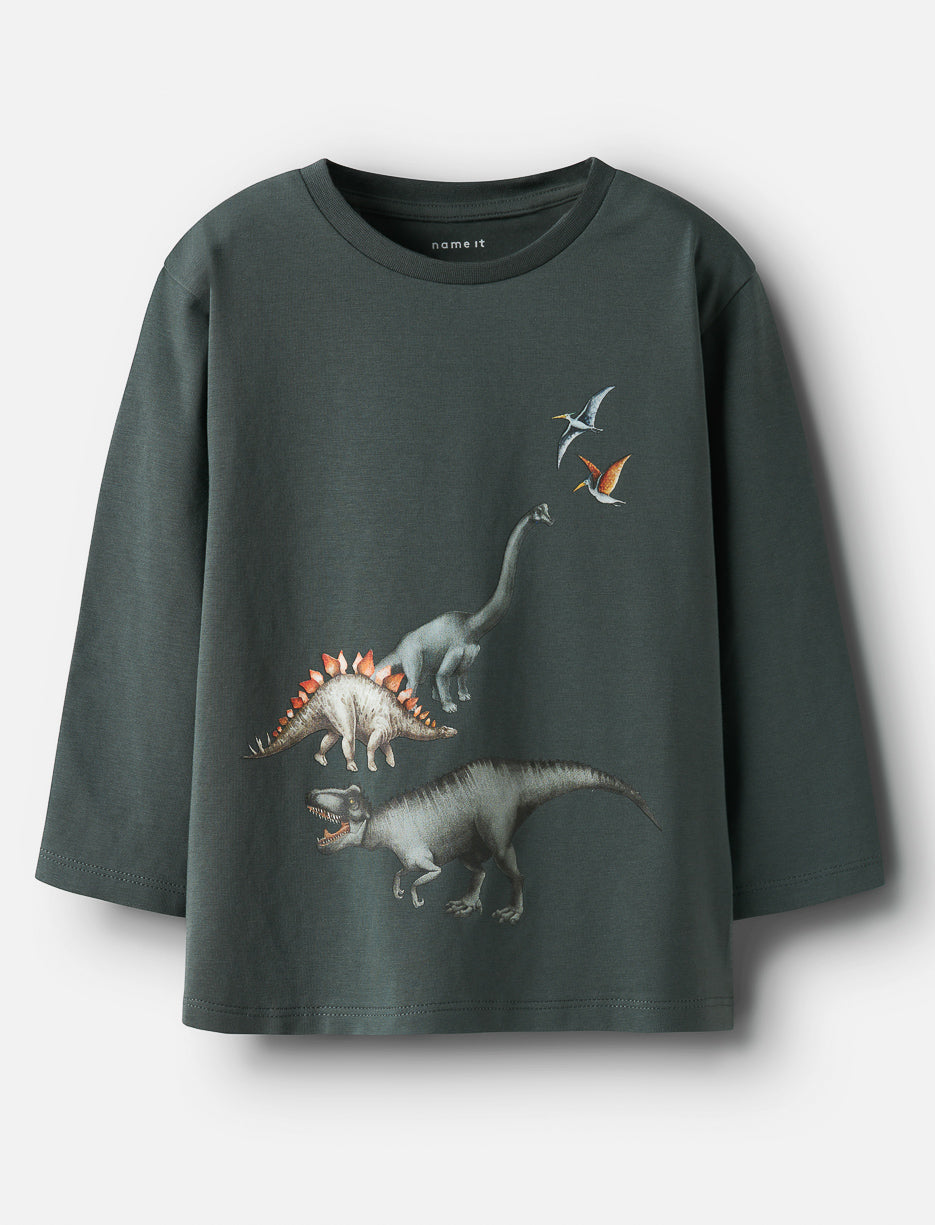Wrawr! This little boy's t-shirt features fun dinosaurs that will capture the imagination. Made from soft jersey composed of 95% organic cotton and 5% elastane, it offers comfort and flexibility for active play.