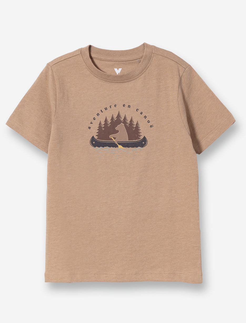 This boys' t-shirt combines comfort and style with its soft organic cotton. It features short sleeves and a timeless crew neck, complemented by an attractive print on the front. A reliable basic for your child's wardrobe.