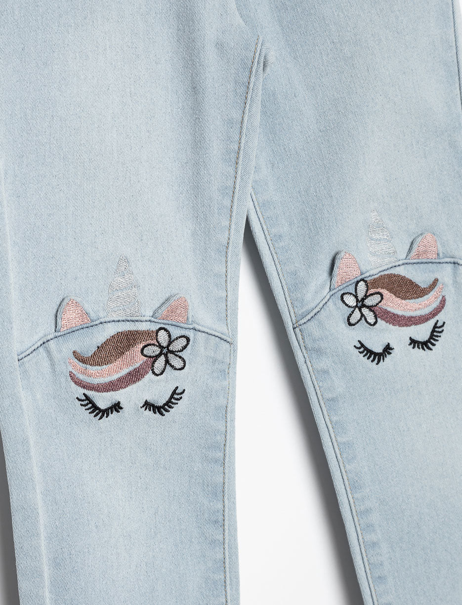 Magical and comfy, these jeans bring a playful touch to everyday outfits. Featuring adorable unicorn embroidery on the knees and a stretchy waistband, they offer style without compromising on comfort. Perfect for little dreamers on the move!