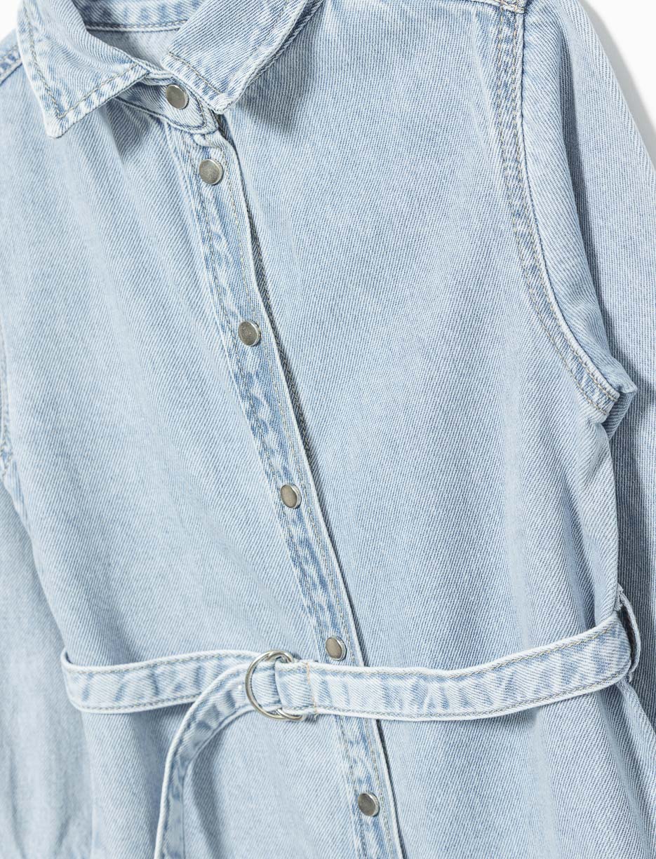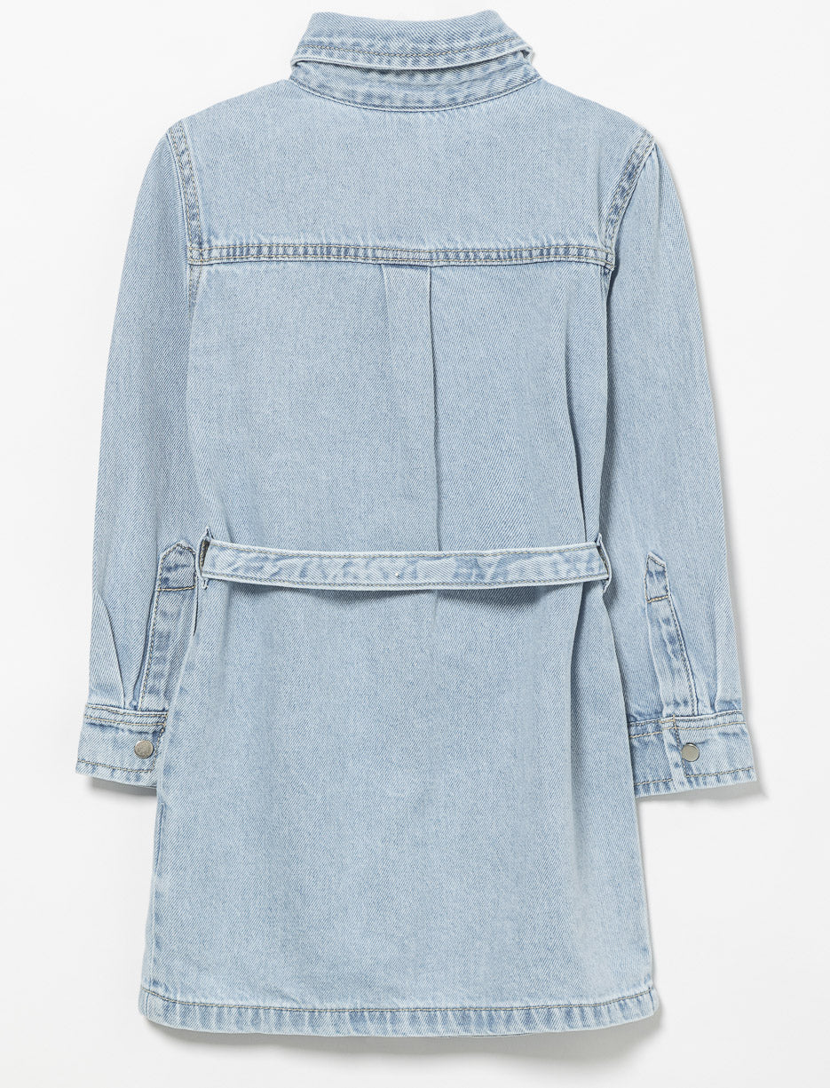 Let her wardrobe ride the western breeze with this belted denim dress featuring snap buttons. Its rancho-inspired style sparks big dreams, free play, and confident little cowgirl charm.
