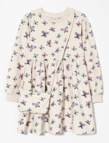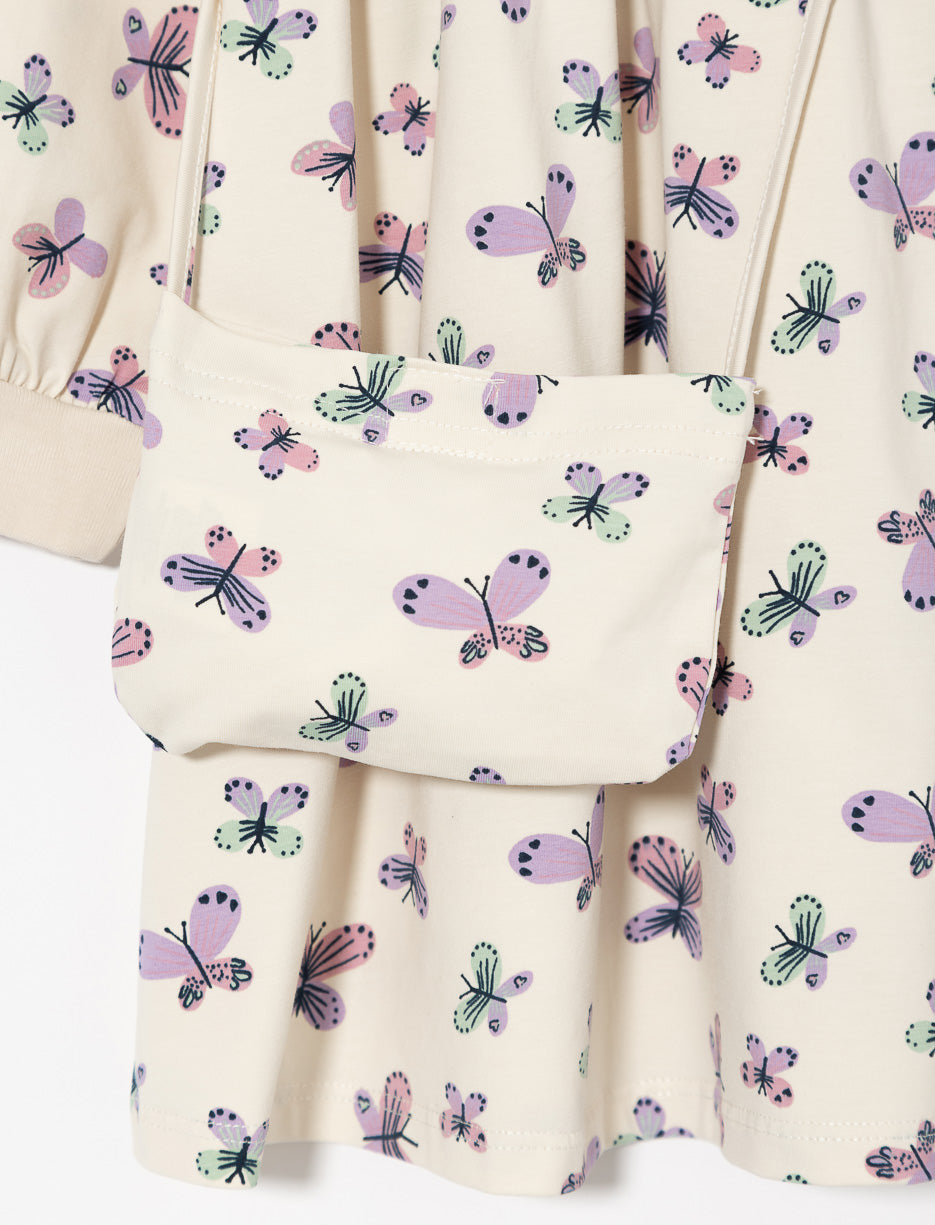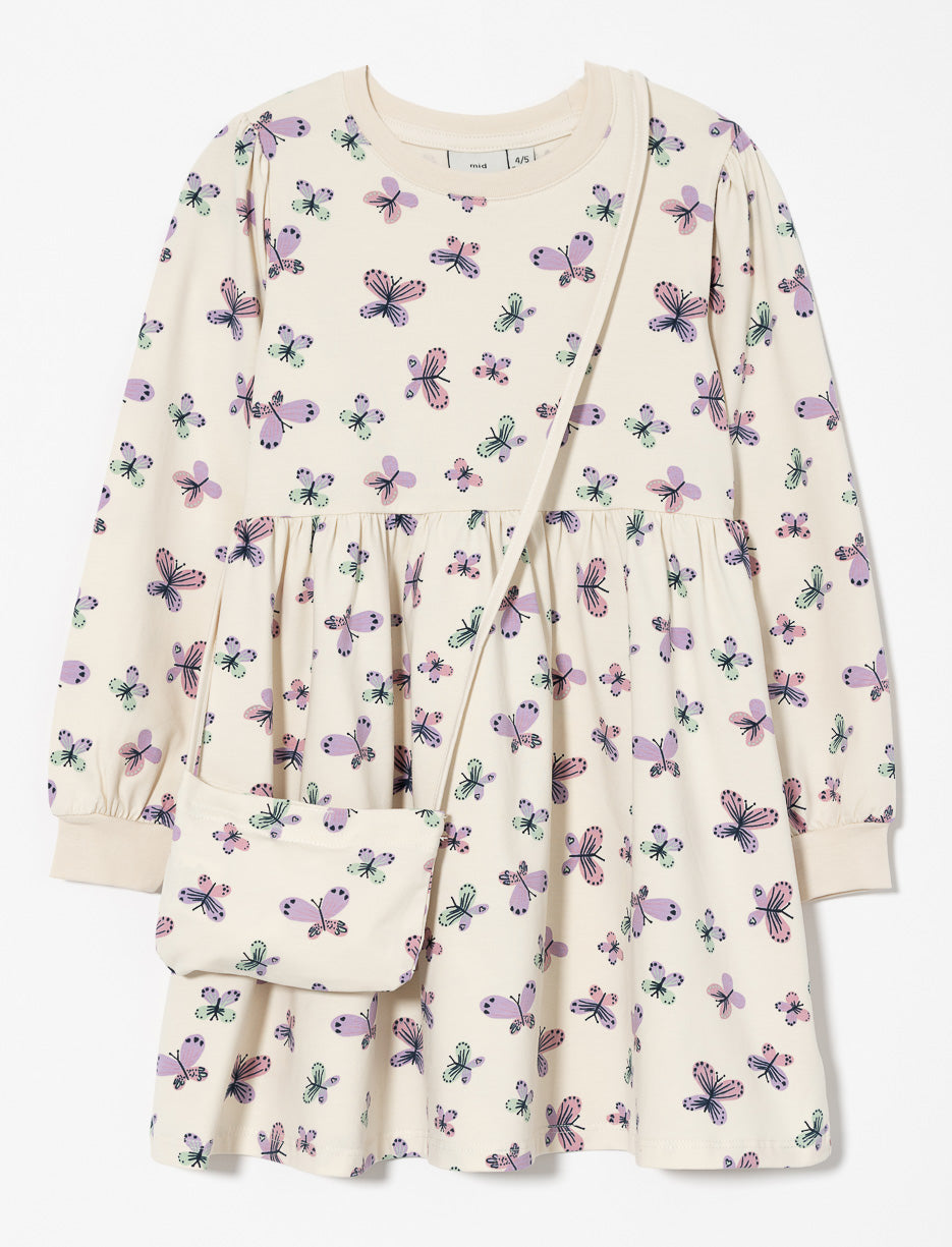 A delightful duo combining style and practicality: a comfy dress paired with a matching little bag, perfect for your girl’s daily adventures with a playful twist.
