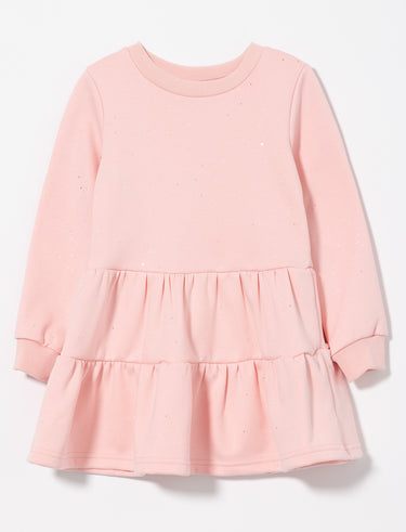 Let your little star shine in this glitter tiered dress, blending softness and sparkle for unforgettable days.