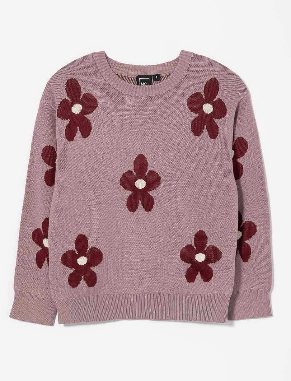 Knit Floral Sweater - Little Girl