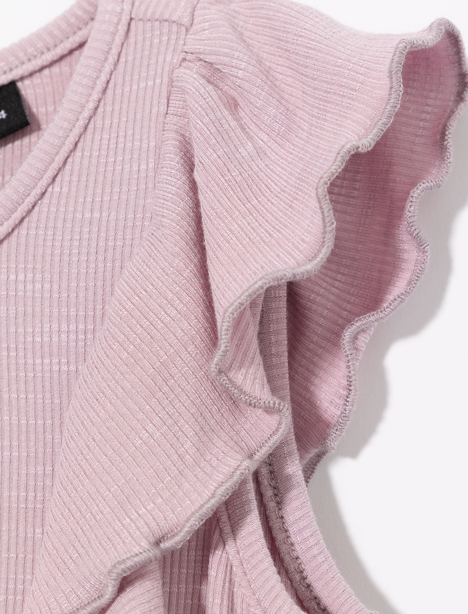 Discover this adorable ribbed dress, perfect for little girls! Featuring a classic crew neck and elegant ruffles at the front and back, it adds a playful touch to any outfit. Both practical and stylish, the button closure at the back makes dressing easy. A must-have for your little princess’s wardrobe!