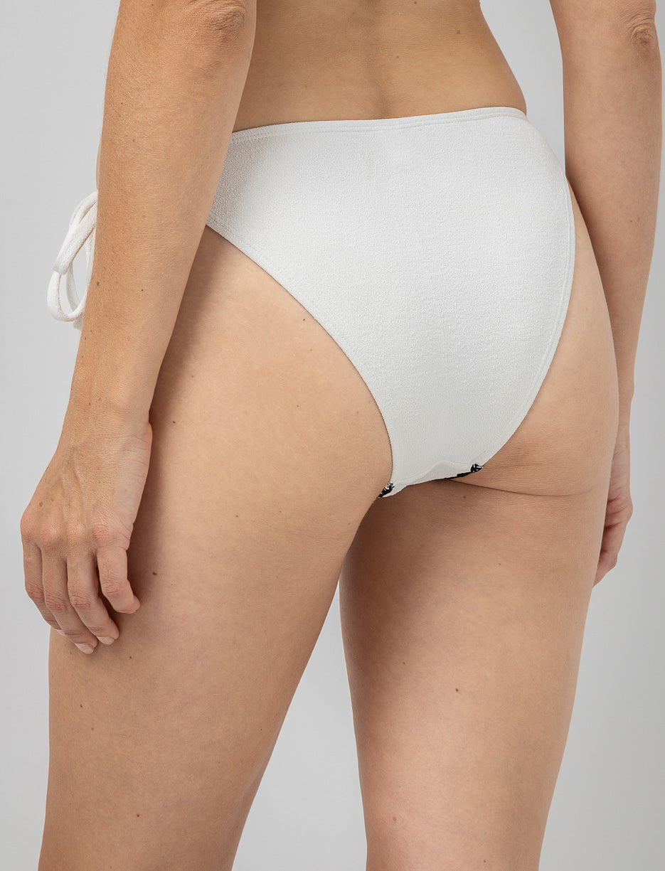 This medium-coverage bikini bottom charms with pretty ties and delicate embroidery. Pair it with the matching top for a refined beach look.