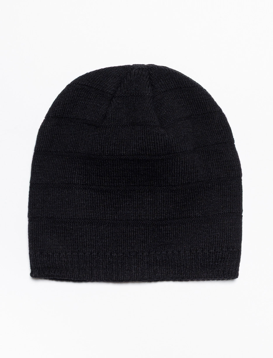 Stay cozy and warm with this soft knit beanie. Its striped design adds a modern touch to your winter outfits.