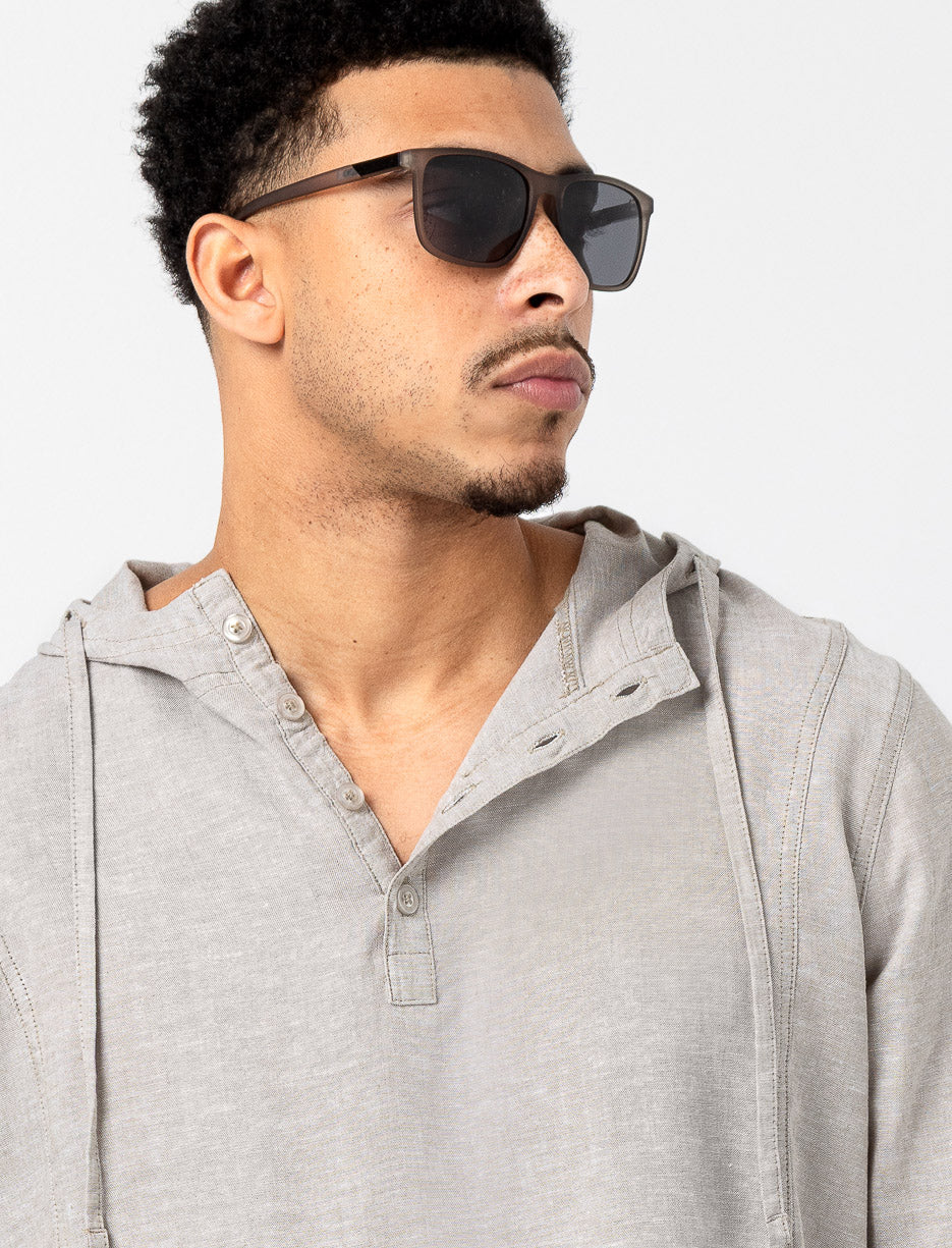 Designed for an easy, relaxed look, this linen top feels light and comfortable. The hood with drawstring and half-button placket bring a modern touch, ideal for mild days or effortless layering.
