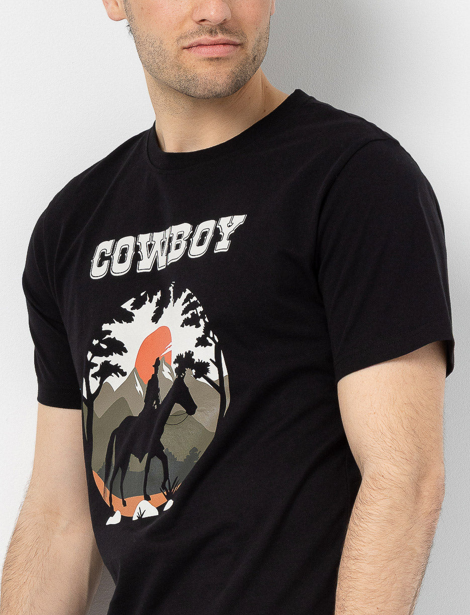 A printed t-shirt with a western vibe. Featuring bold designs inspired by the wide-open landscapes of Texas, perfect for adding rugged charm to any casual look.