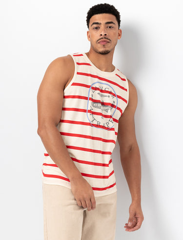 Dynamic stripes and a marine chest print give this tank a holiday-ready feel. An easy style that hints at open water and adds a bright touch, even when staying close to home.