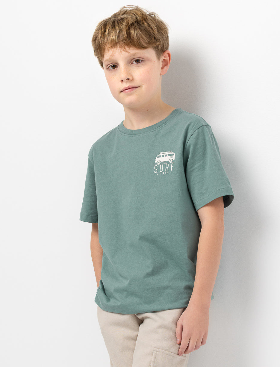 An organic cotton t-shirt with a back print inspired by surf culture. Light and comfortable, it brings a relaxed feel to everyday wear and blends easily into a young, modern wardrobe.