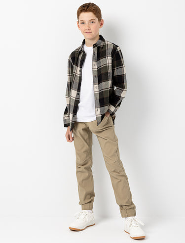 Designed for comfort and daily wear, these joggers feature elastic cuffs, utility stitching and an adjustable waist. A functional fit with a modern twist.