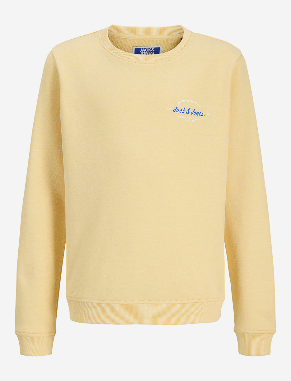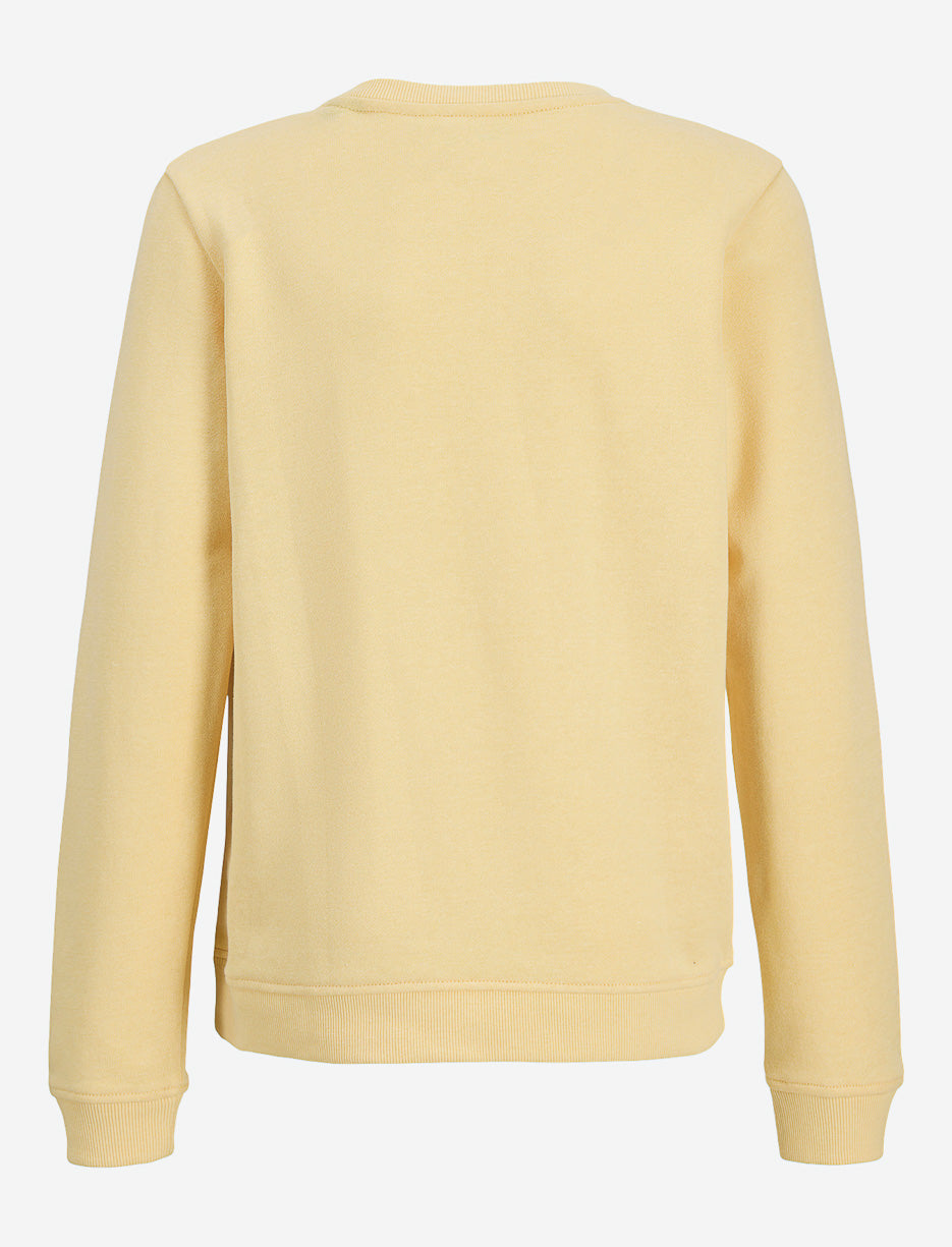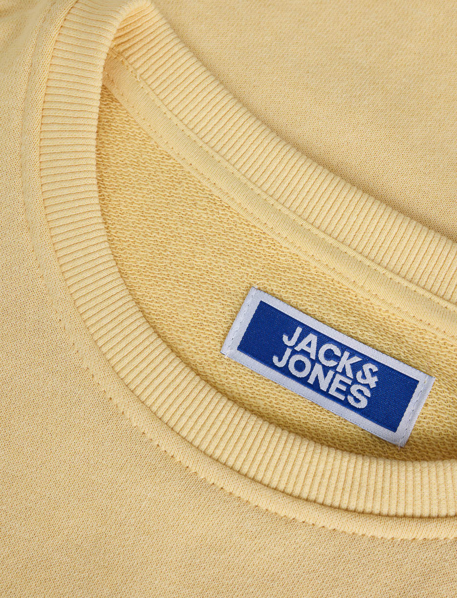 Jack & Jones sweater in vibrant yellow with a dynamic print. This essential basic offers comfort and style for teens looking for casual looks. Its crew neck and modern cut make it easy to pair with any jeans or trousers.