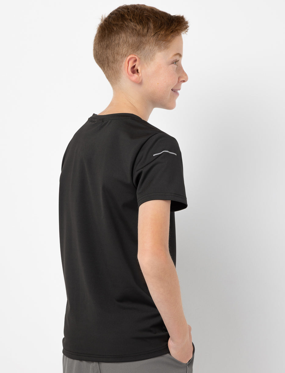 Sports T-shirt for teen boys in a solid color with a minimalist sleeve print. Lightweight and comfortable, it pairs easily for workouts or casual days.