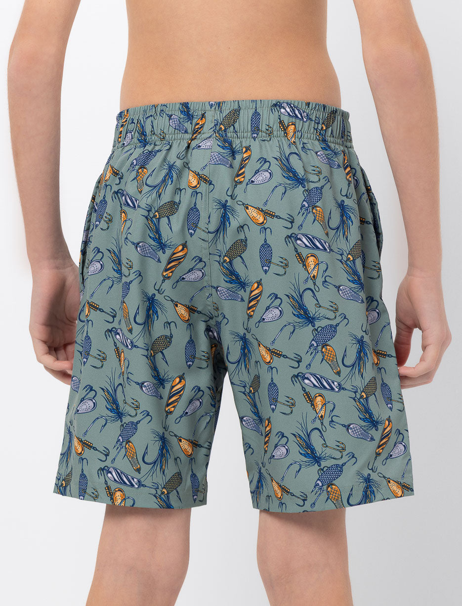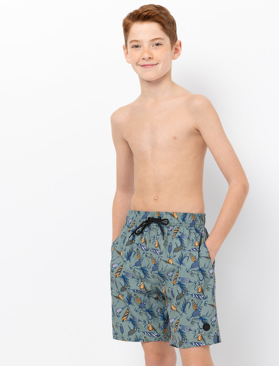 These printed boardshorts are designed for comfort and easy movement during water activities. The elastic waistband with drawstring provides a secure fit for beach or pool days. Inseam: 4 in.