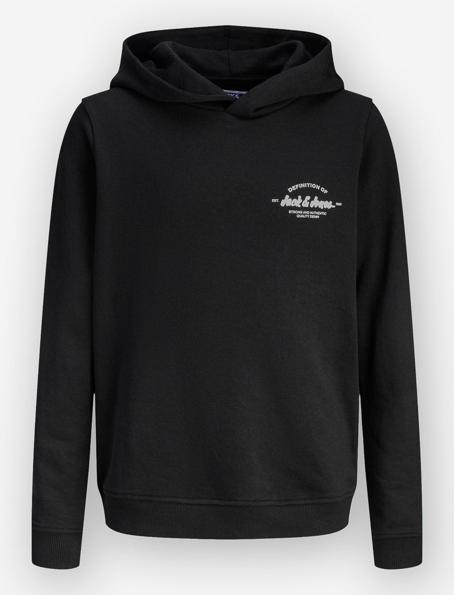 Jack & Jones black hooded sweatshirt with a trendy print. Soft interior for all-day comfort, versatile style that works with any look. The must-have piece for a modern wardrobe.