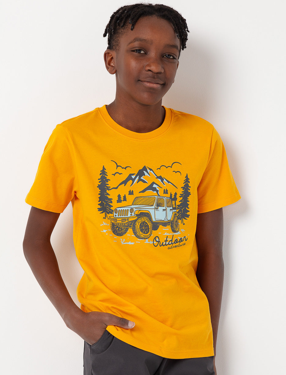 Made for boys on the move, this comfy tee will keep up with every one of his adventures.
