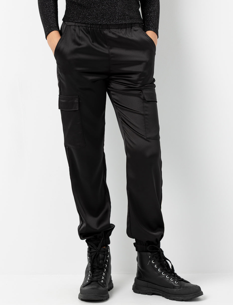 Sleek meets utilitarian with these satin cargo pants, perfect for when you want that laid-back vibe with a polished twist.