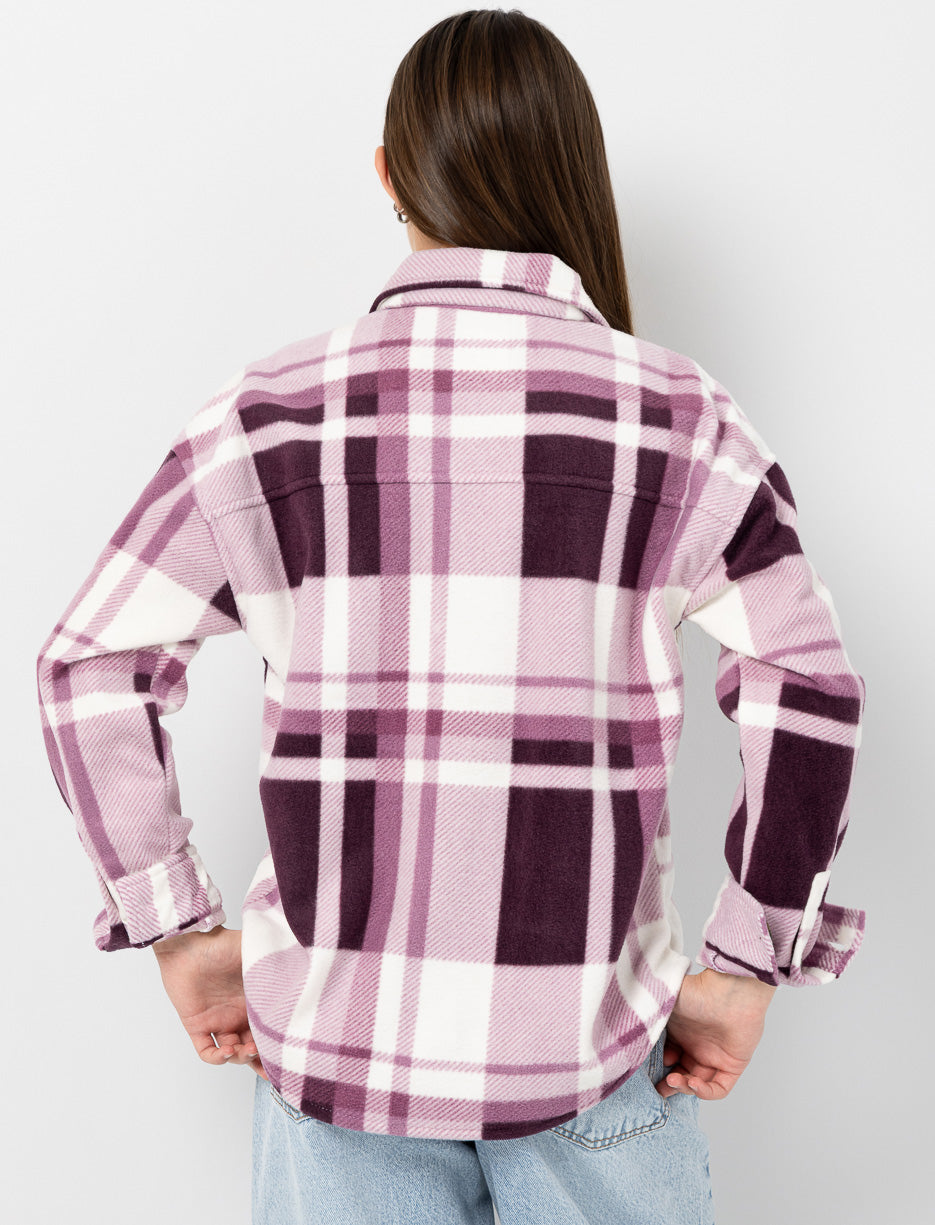 A polar fleece shacket that combines softness and warmth. With its plaid pattern and cozy fabric, it’s the perfect piece for mid-season or chilly days.