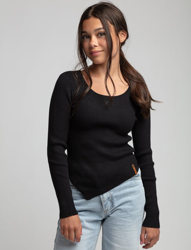 With its trendy rib-knit and original asymmetrical fit, this t-shirt will quickly become her new go-to for all her OOTDs.