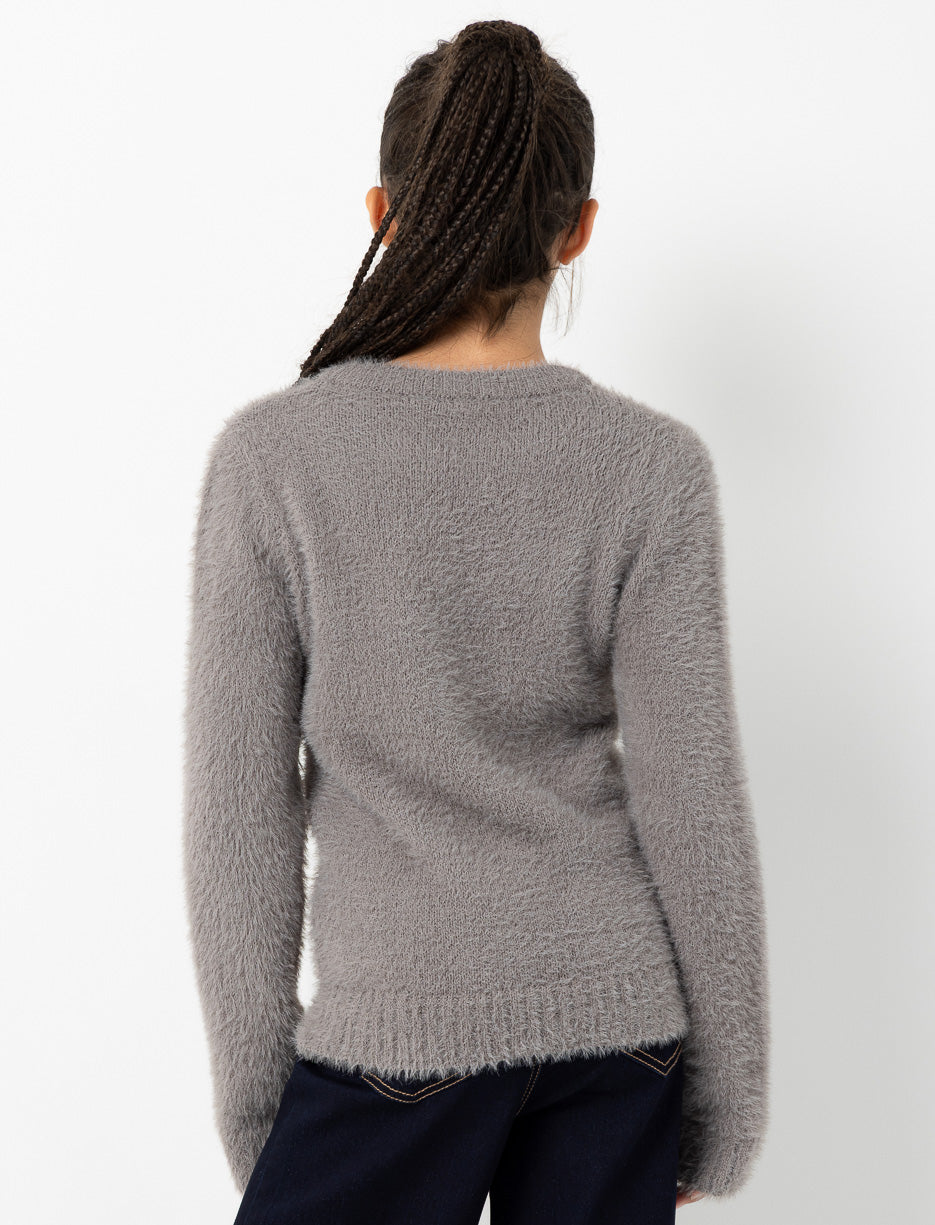 Give your girl irresistible comfort with this fuzzy sweater. Its soft and cozy texture keeps her warm while adding a touch of adorable style to her everyday look.