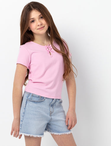 Ribbed T-shirt perfect for teens looking for an essential basic. Comfortable fit with short sleeves and a crew neck featuring a practical keyhole opening with loop detail. Available in a solid colour, this T-shirt pairs easily with any style.