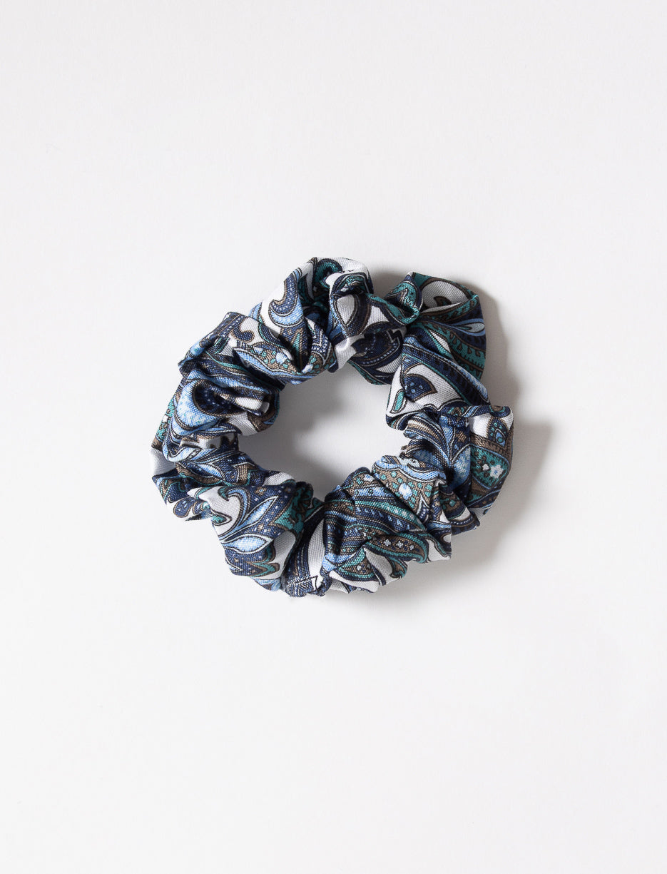 Hair scrunchie with an all-over floral print. Measuring 10 cm in diameter and 3 cm in width, it adds a feminine touch to any hairstyle.