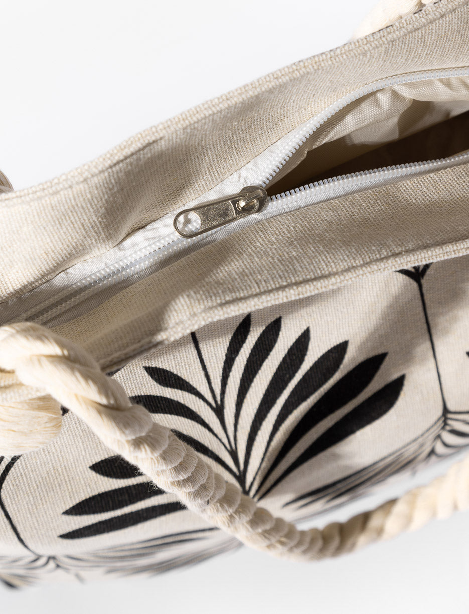 Printed tote bag with cotton rope handles for a casual, beach-ready look. Perfect for daily use or summer getaways. Dimensions: 45 x 40 x 9 cm.