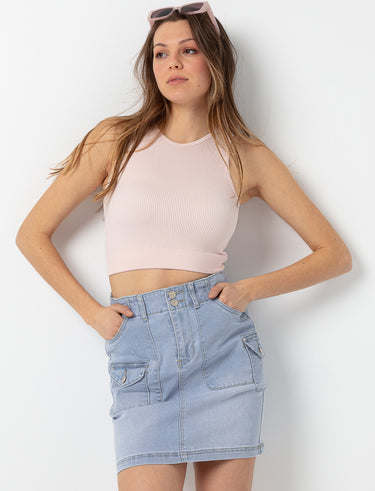 Casual with a twist! This denim skirt brings a fun, modern edge to any outfit. With its cool details and effortless vibe, it’s ready to take on any day—just add your favorite top and go!