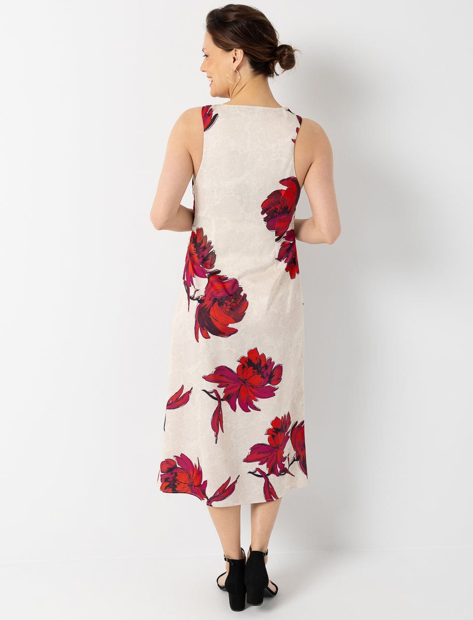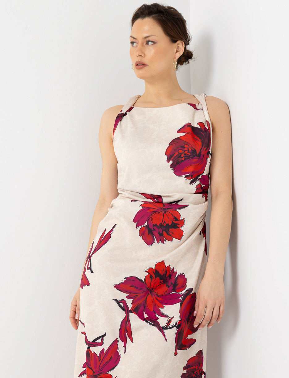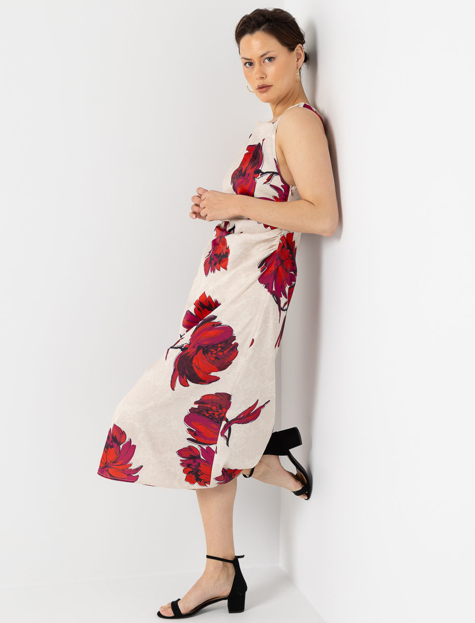 Floral Satin Dress with Gathered Waist