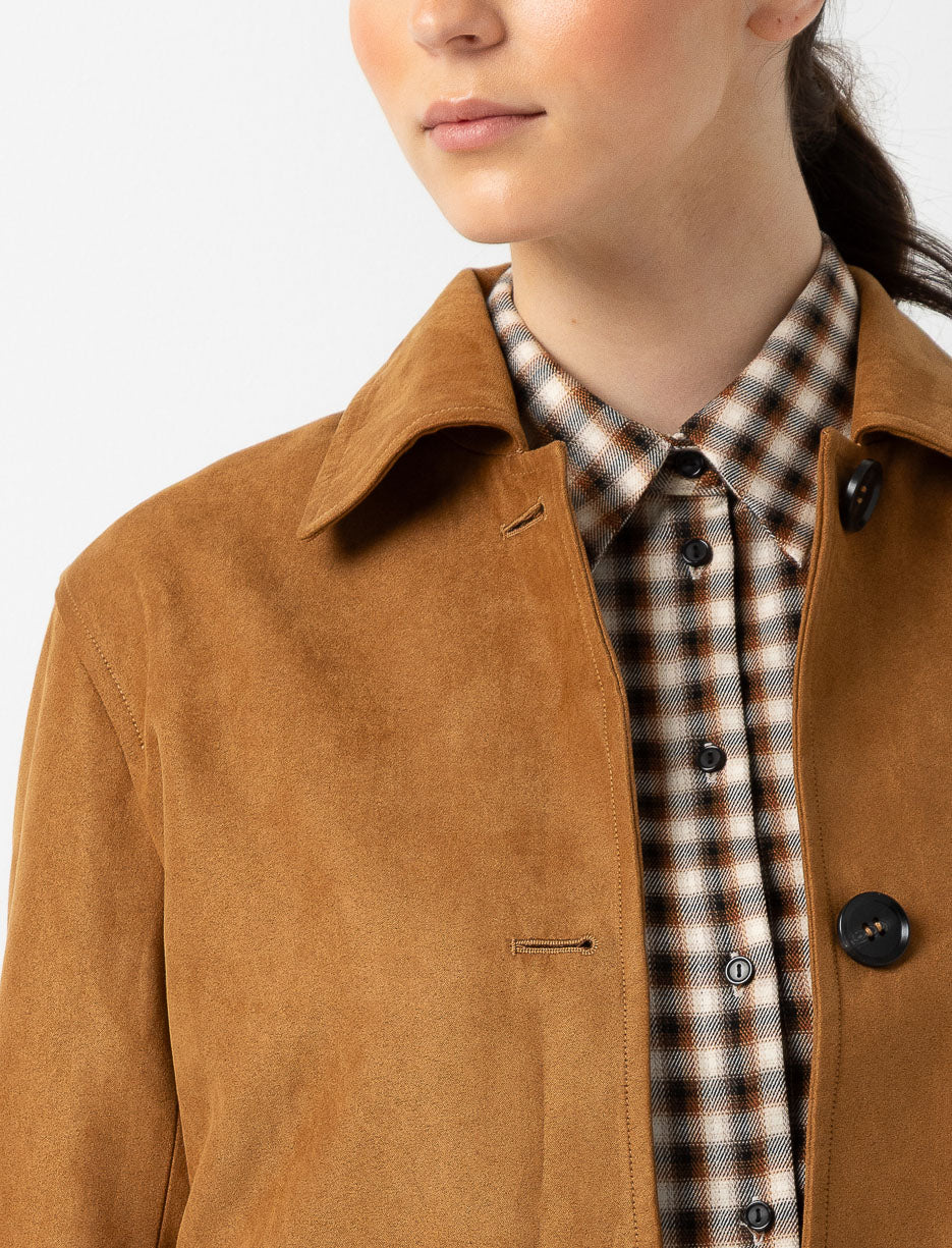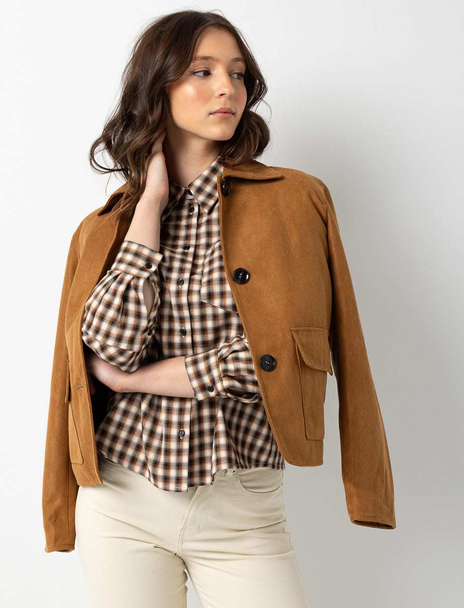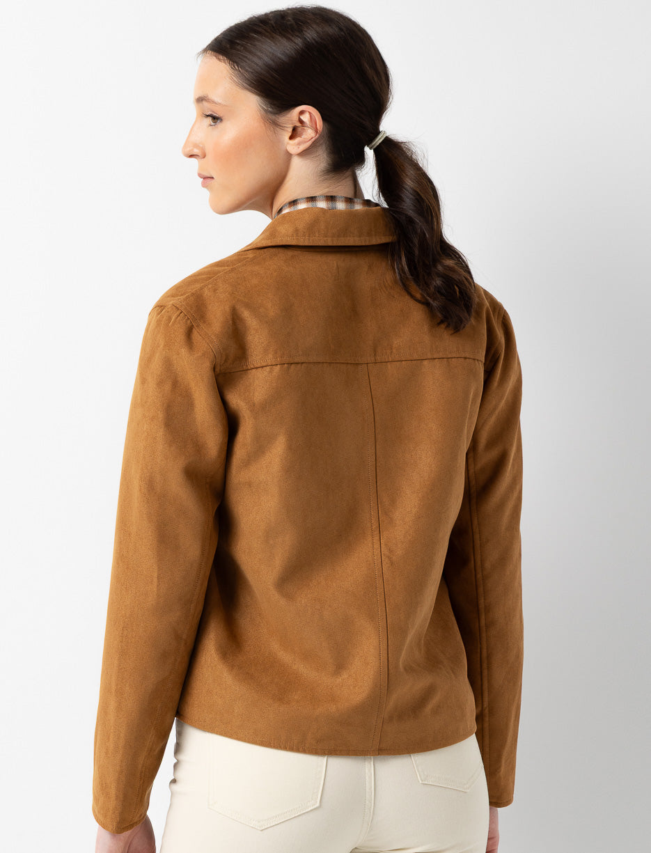 Short Faux Suede Jacket with Flap Pockets