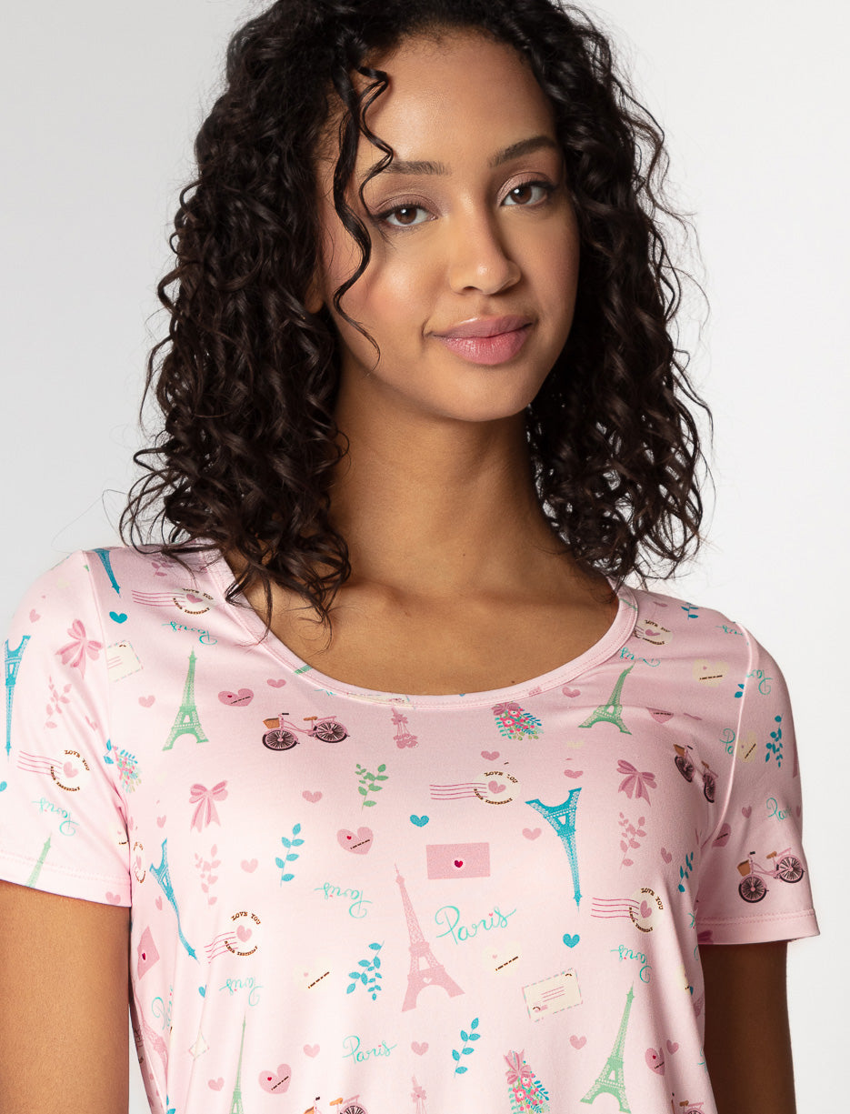 This short-sleeve nightie offers the perfect blend of coziness and charm. Designed with a soft, breathable fabric and a flattering scoop neckline, it ensures restful nights and relaxed mornings.
