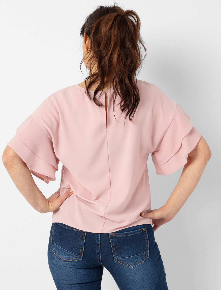 This blouse is all about subtle elegance, with flowy ruffled sleeves that add a touch of movement. Perfect for dressing up or keeping it casual, it’s a go-to piece for feeling polished without the fuss.