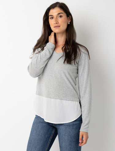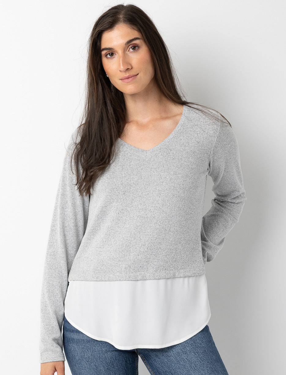 V-neck Sweater with Contrast Insert