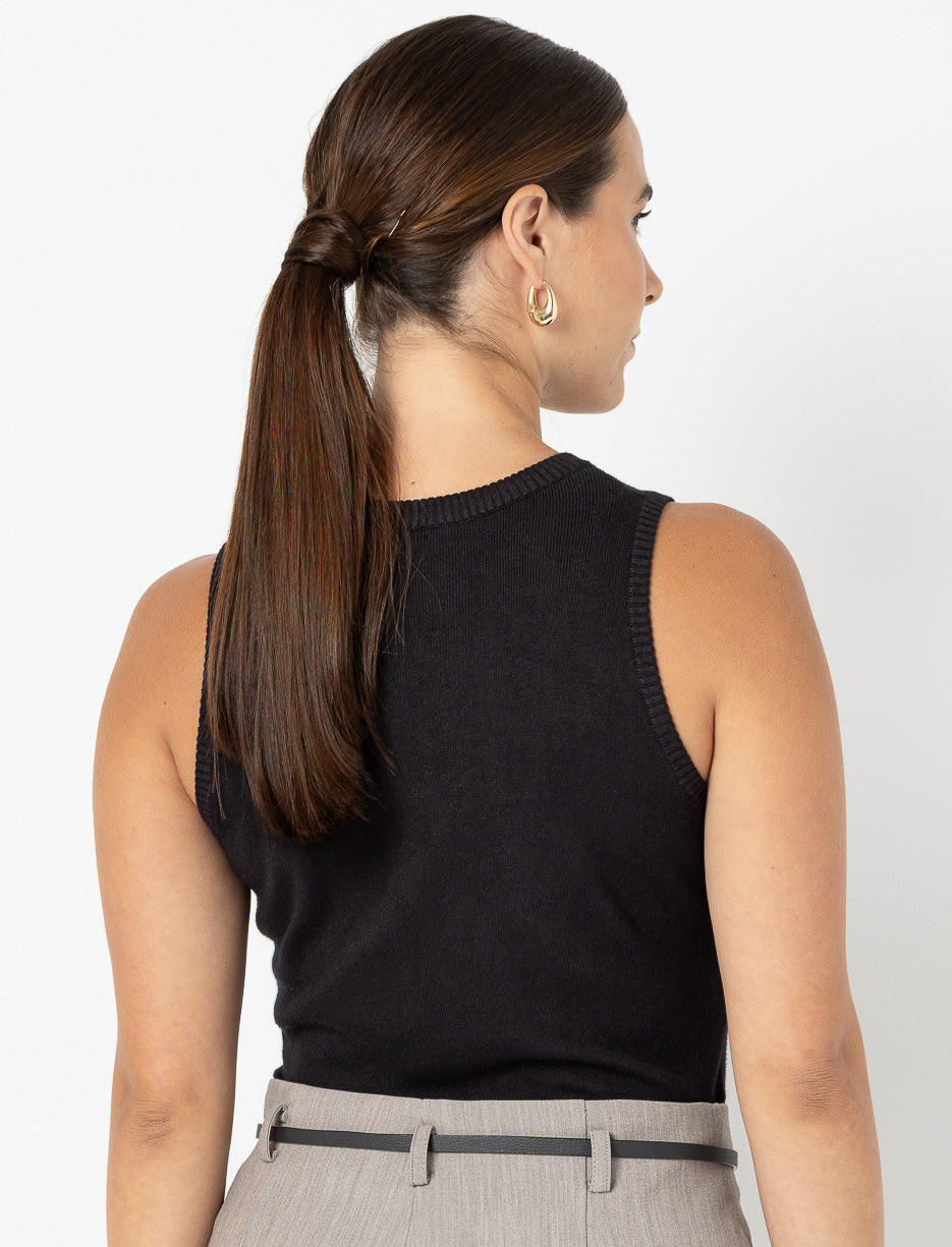 This sleeveless ribbed top combines simplicity and style, perfect to wear on its own or layered for versatile looks.