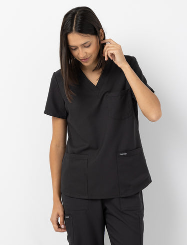 This uniform top is designed for functionality and comfort. Made from breathable fabric with a relaxed fit, it offers ease of movement throughout long shifts. Practical pockets keep essentials close, while the V-neck adds a professional touch.