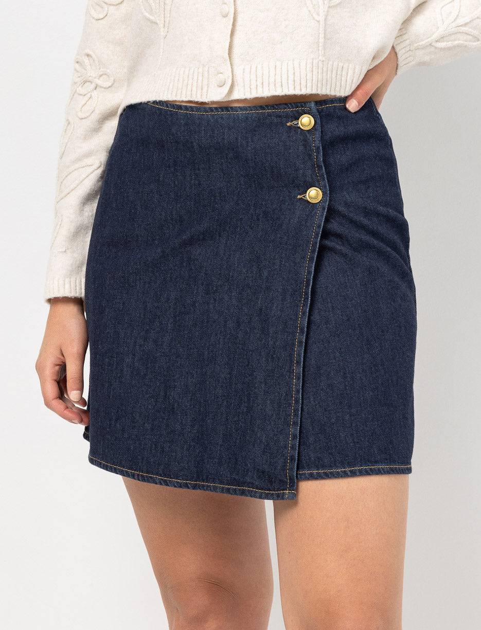 Complete your wardrobe with this modern denim skirt. Designed with a simple cut and decorative buttons, it offers a versatile style that’s easy to wear for everyday looks or casual outings.