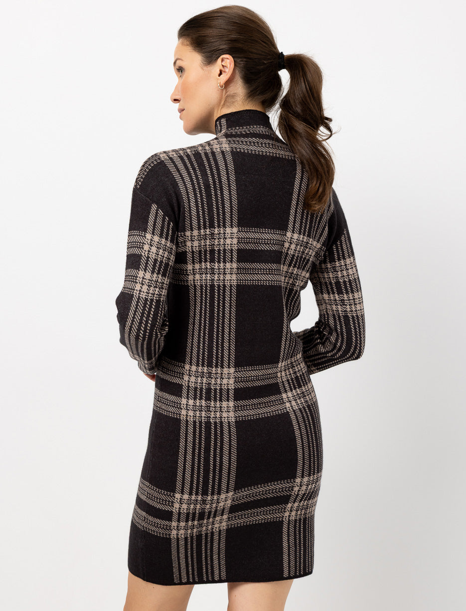 Knit Plaid Dress with Mock Neck