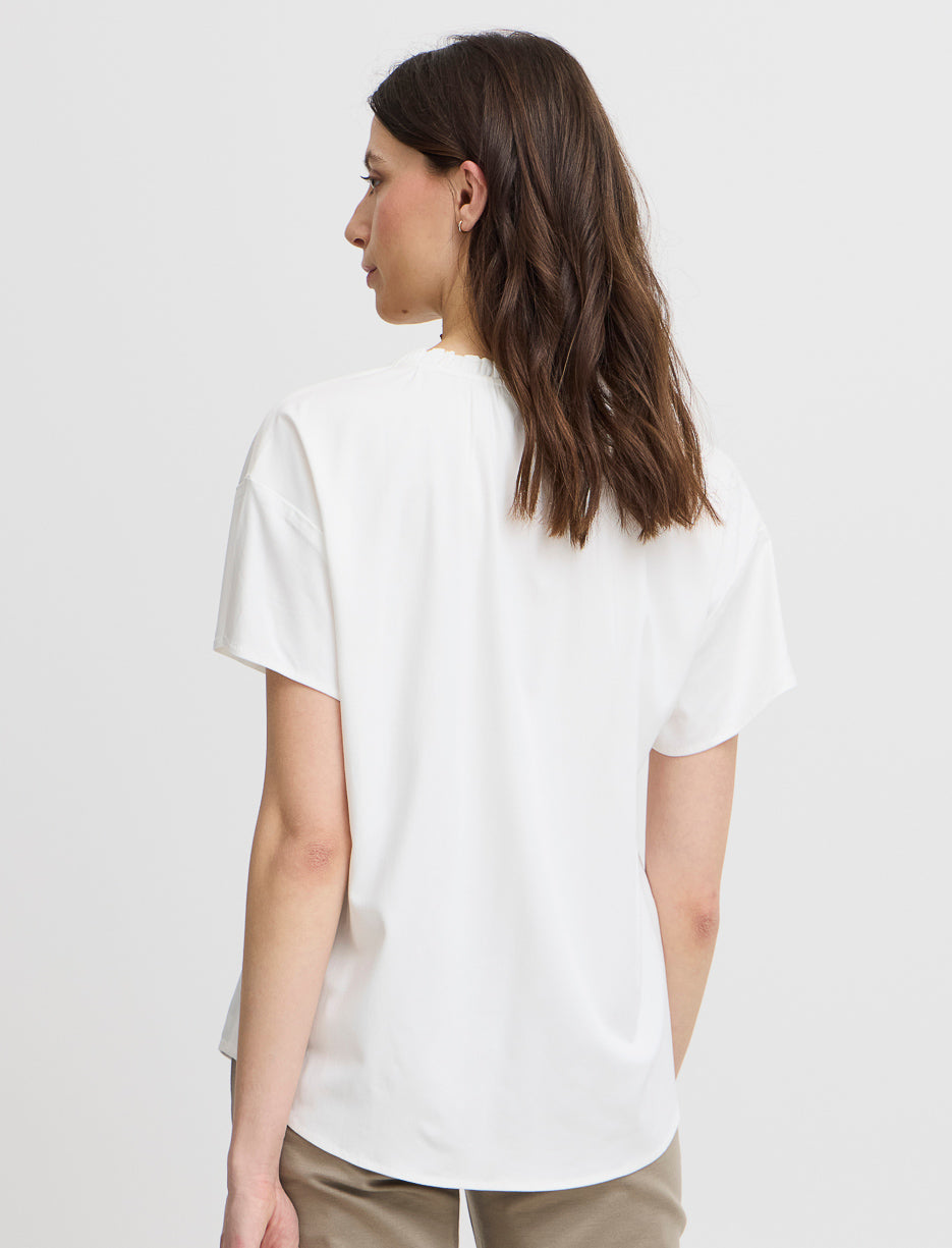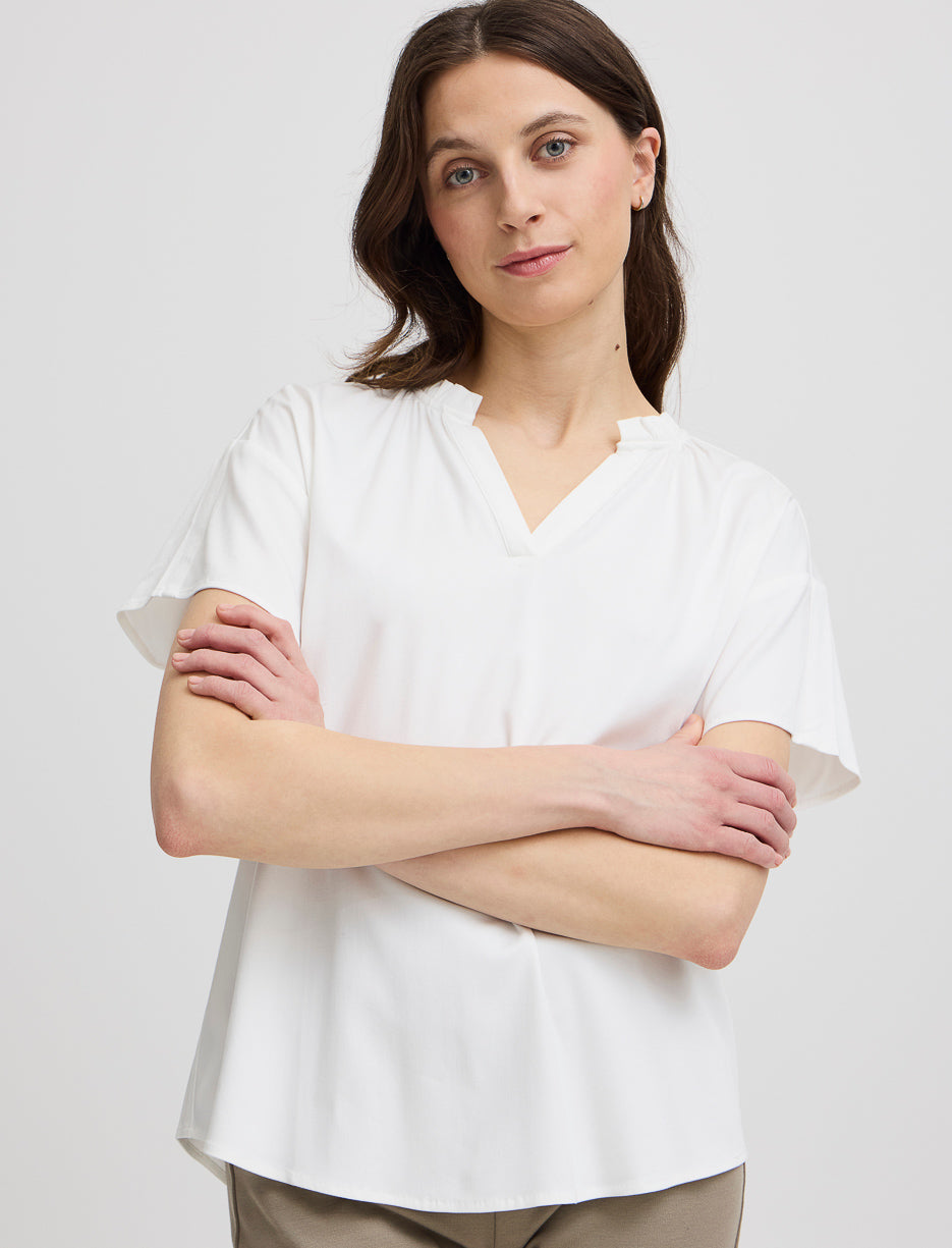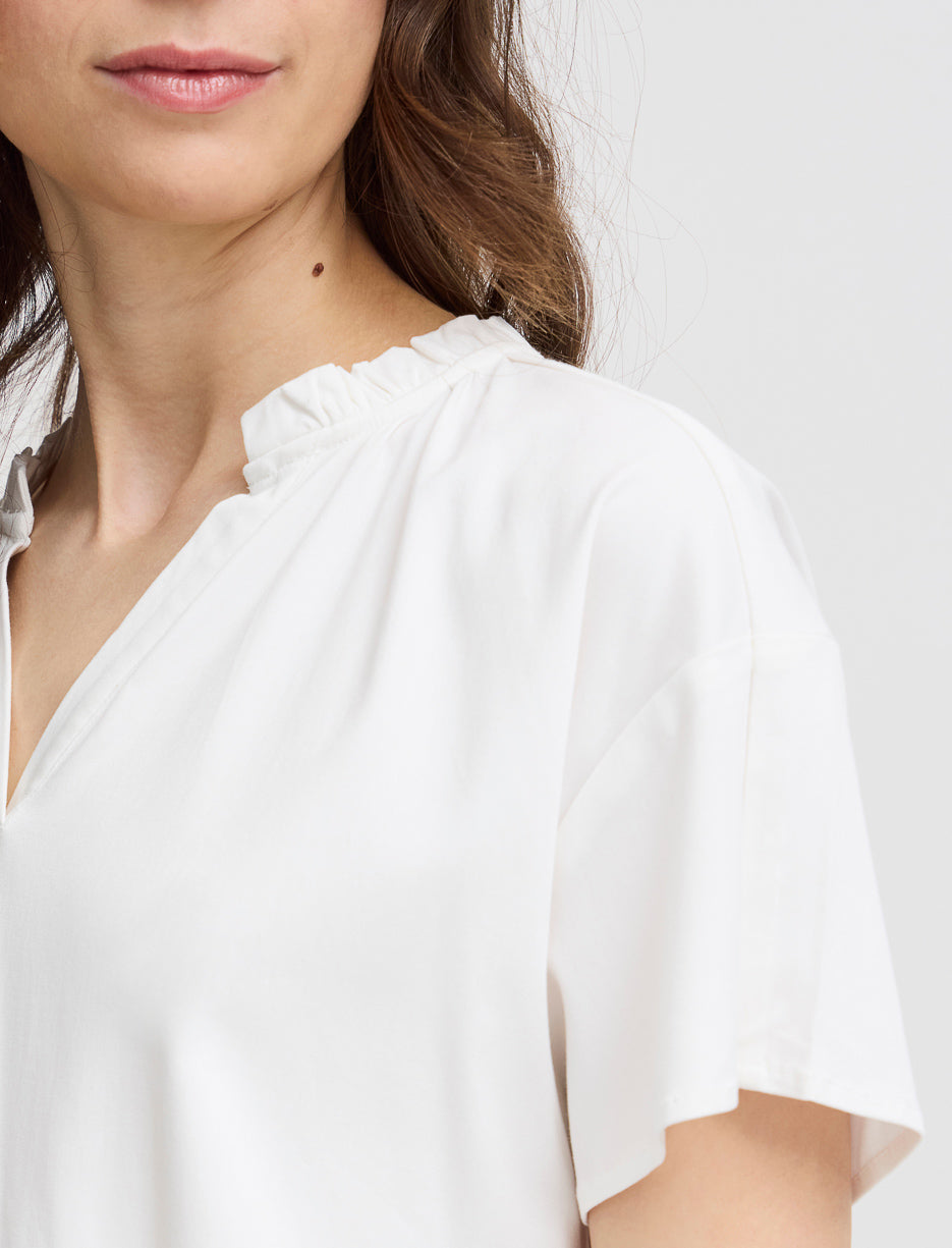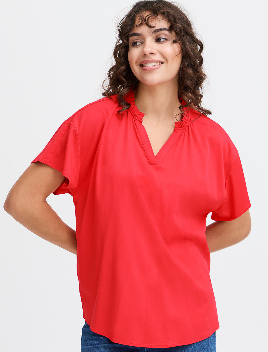 A blouse that brings effortless elegance to your everyday look. The flowing fabric drapes beautifully, while the ruffled neckline adds a touch of femininity. This versatile piece pairs perfectly with jeans or skirts.