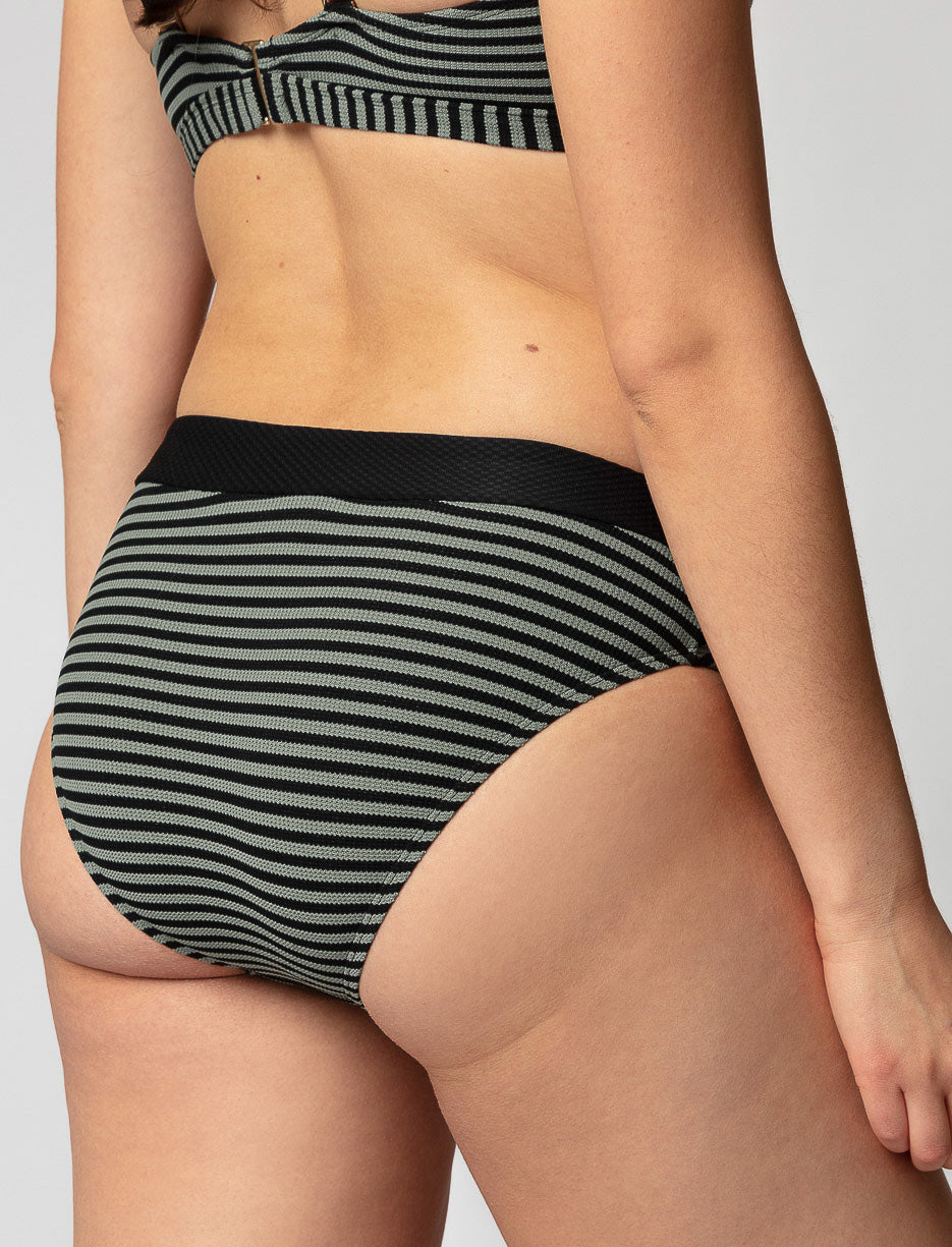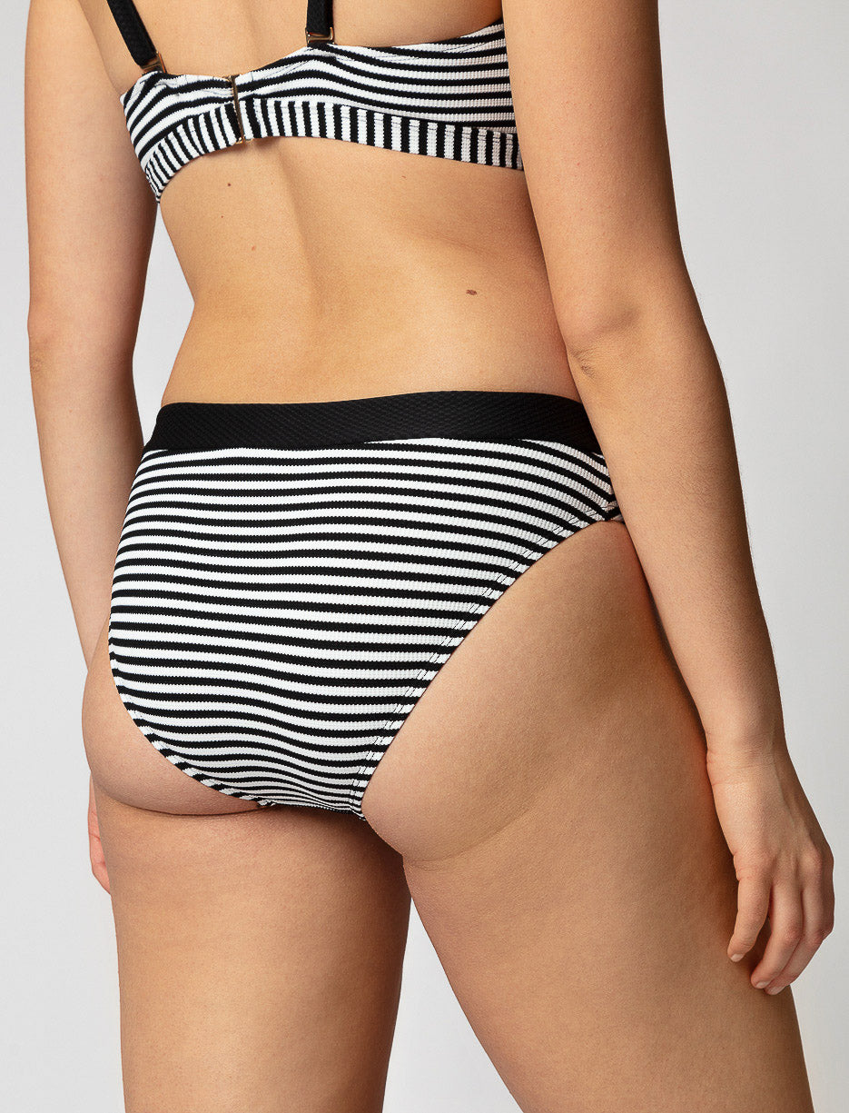 Sleek and flattering, this bikini bottom offers a timeless stripe design paired with a solid waistband for extra style. It's an ideal choice for both active beach days and relaxing poolside.