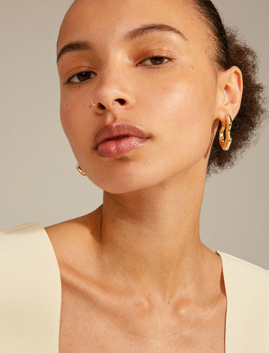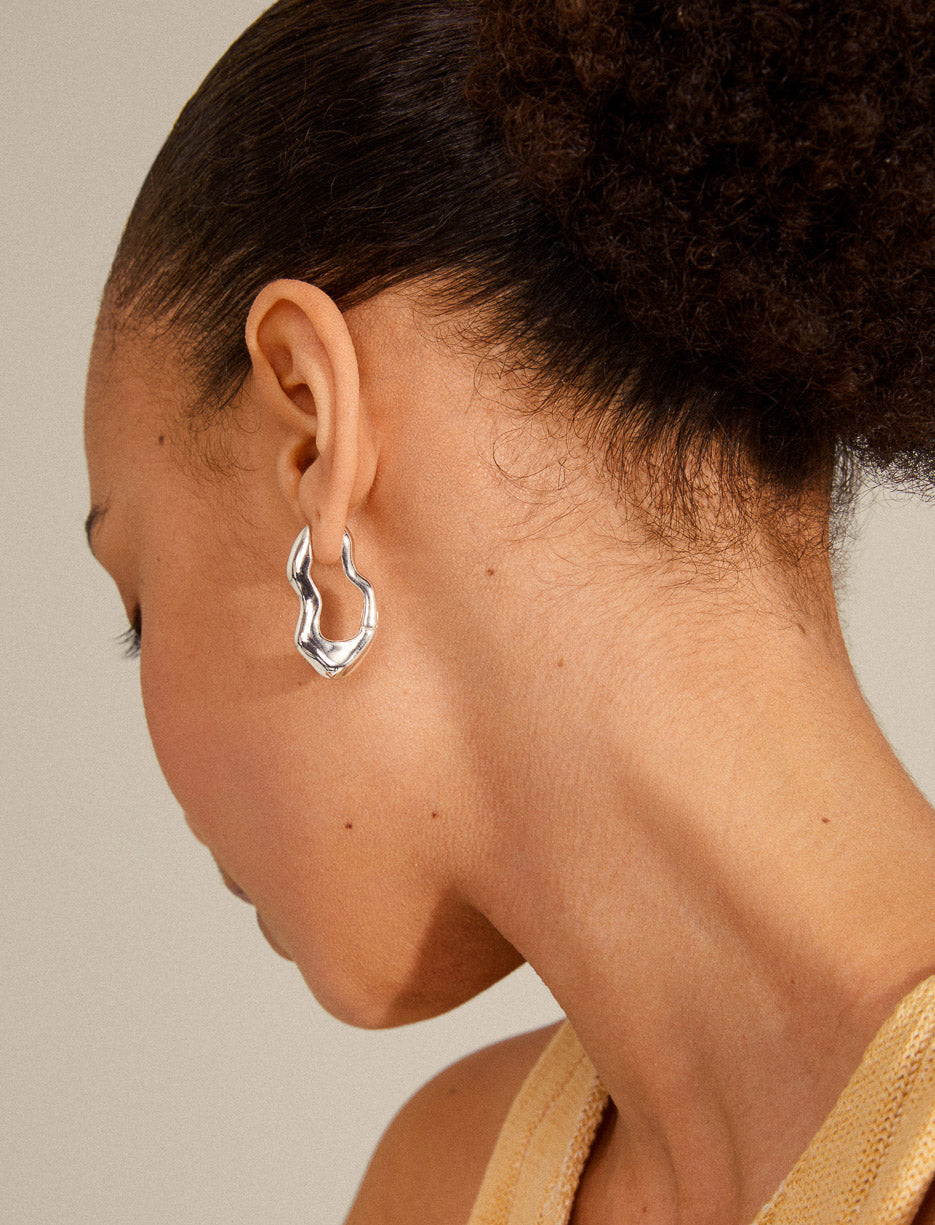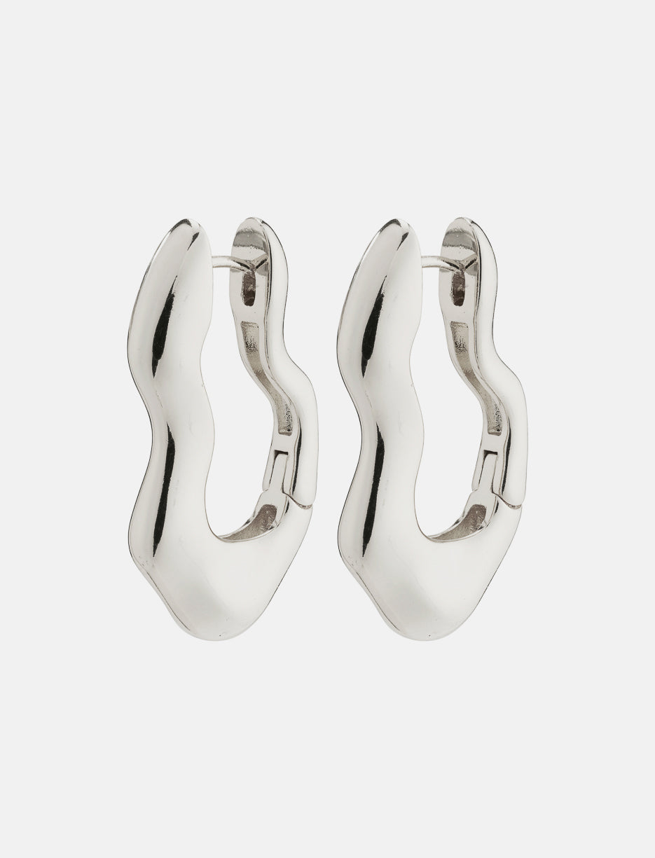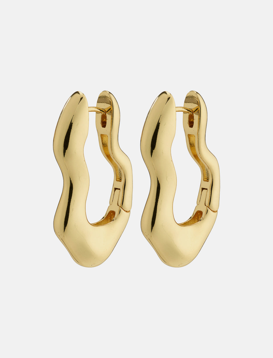 Gold or silver plated oblong earrings with a wavy design and chic organic silhouette. Easy click clasp closure. Made with at least 75% recycled materials for a modern and eco-responsible style.