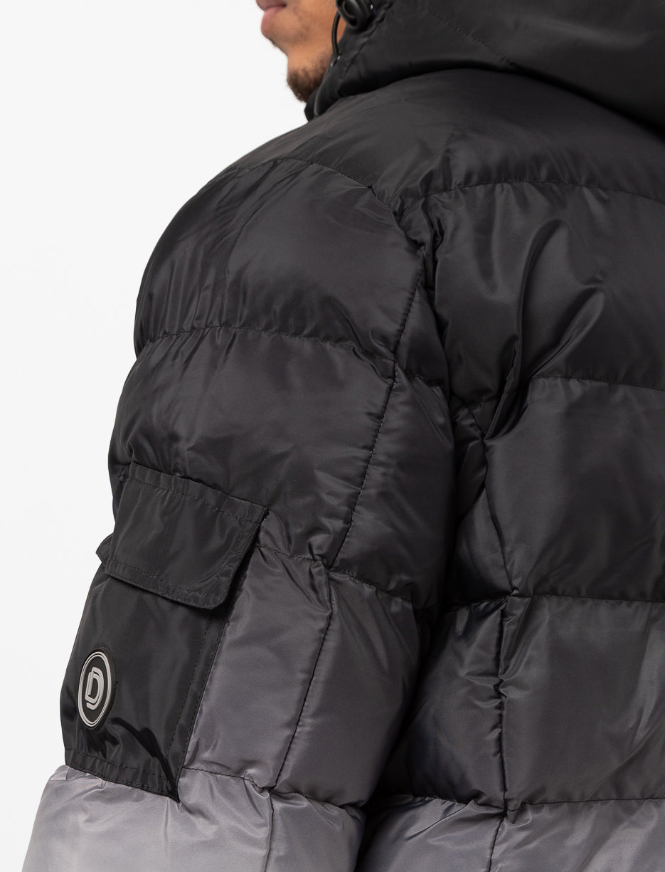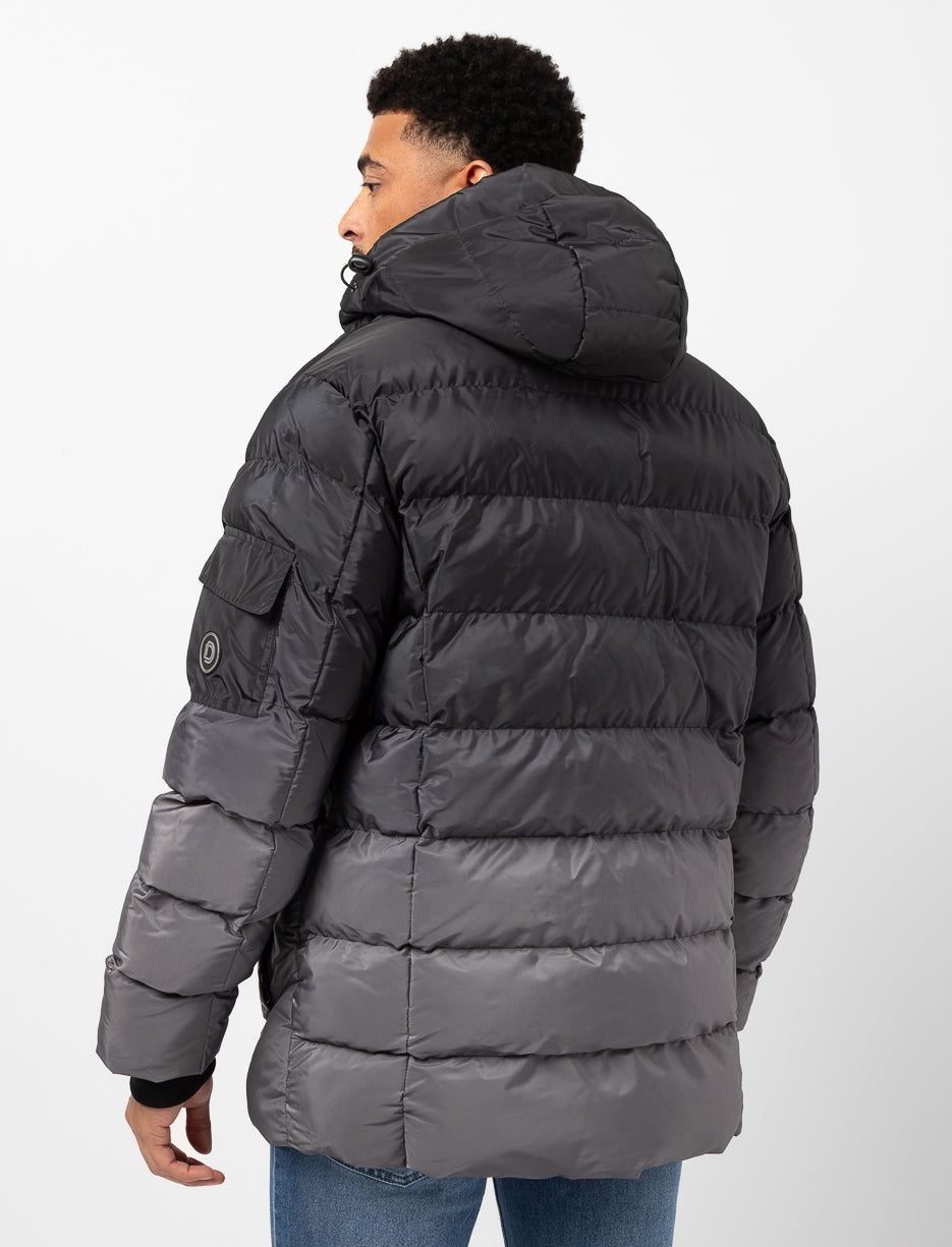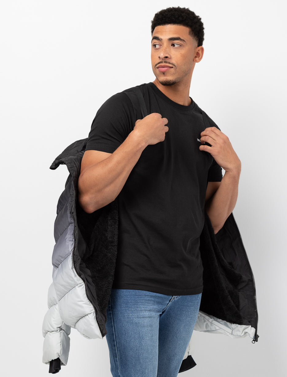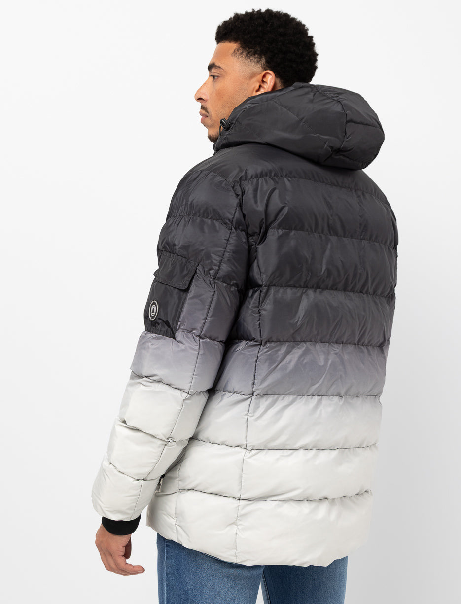This gradient quilted jacket brings together warmth and style. With its sherpa lining and detachable hood, it’s your go-to for cold days.