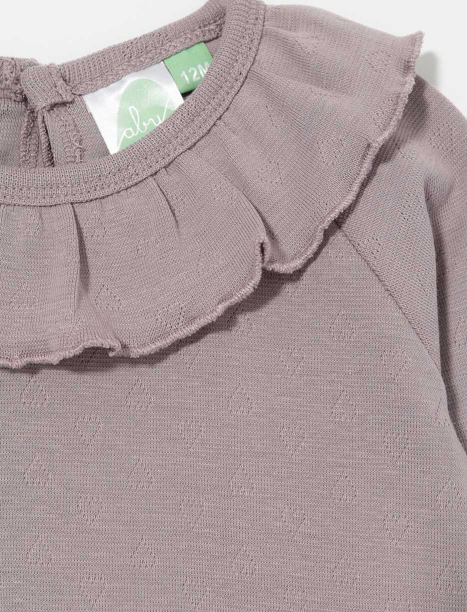 Dress your baby in a delicate bodysuit with refined details, designed to bring both comfort and charm to their first days filled with sweetness.