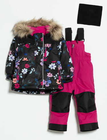 Dress your baby girl in this charming snowsuit with a 5000mm waterproof coating, perfect for keeping her dry and cozy, in temperatures down to -30°C. It's as practical as it is adorable, with adjustable details and safety features.