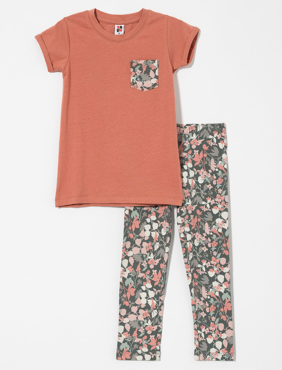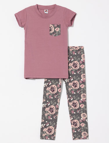 Give her a soft and stylish outfit with this 2-piece set featuring lovely floral prints. The solid tee with printed pocket pairs perfectly with the comfy leggings for a practical yet charming look. Ideal for busy days or relaxed moments.
