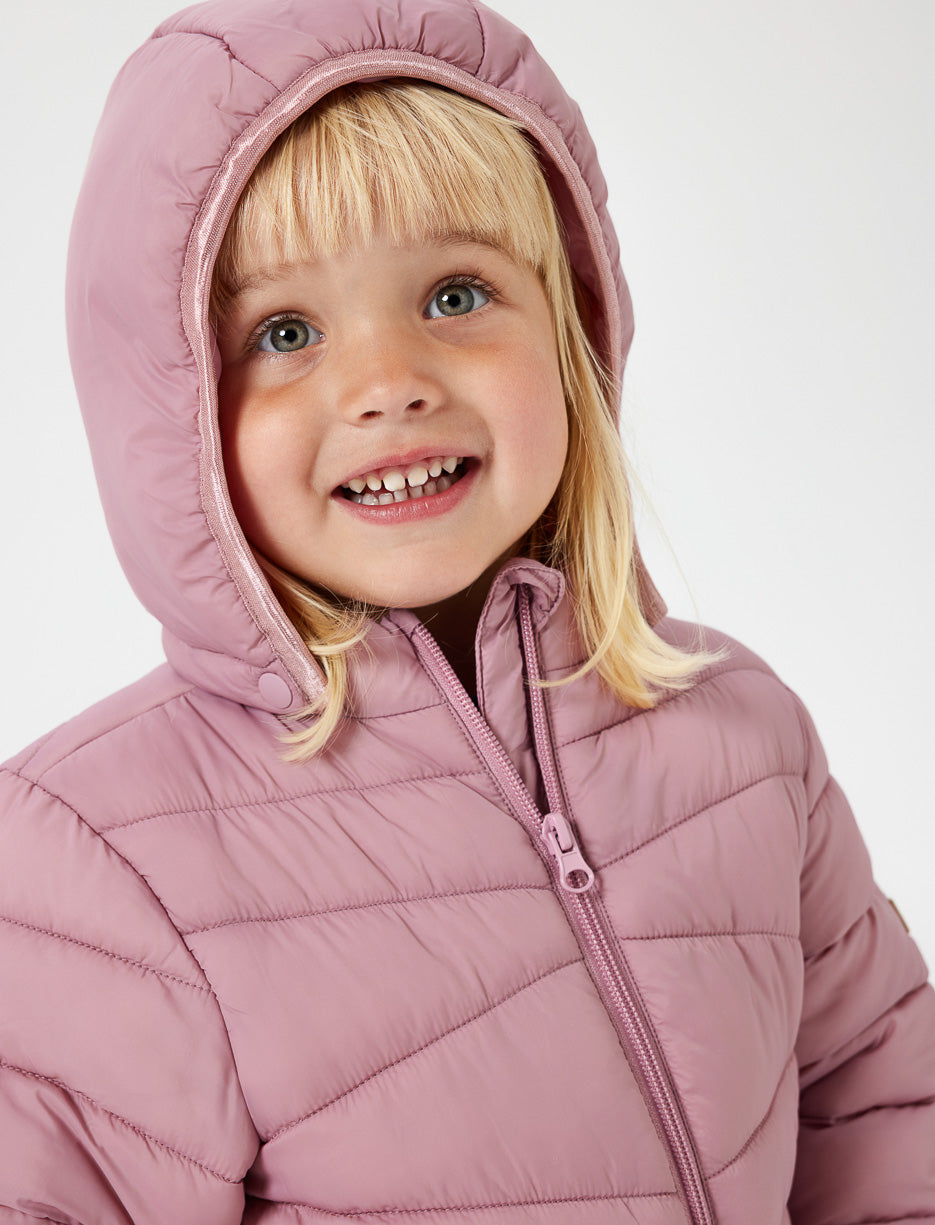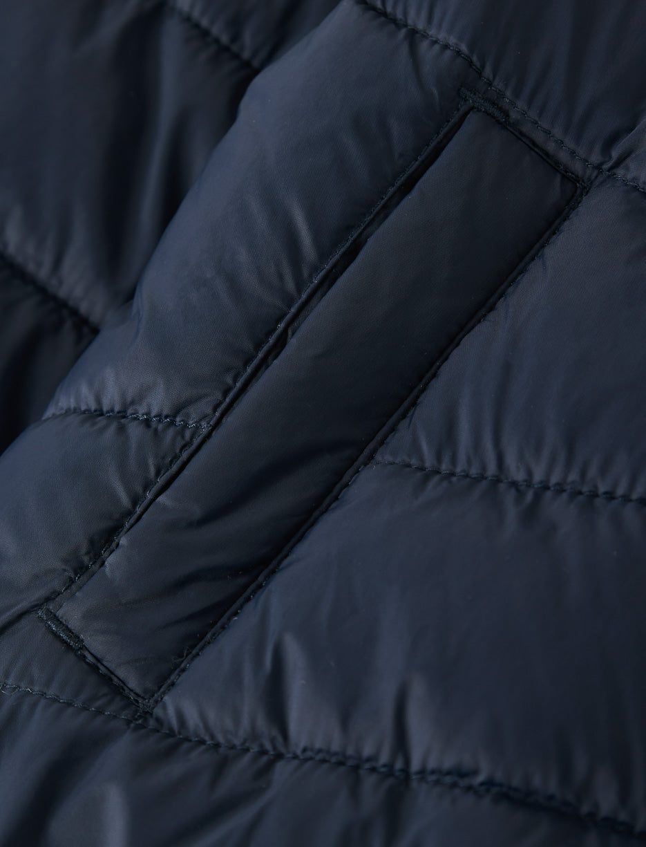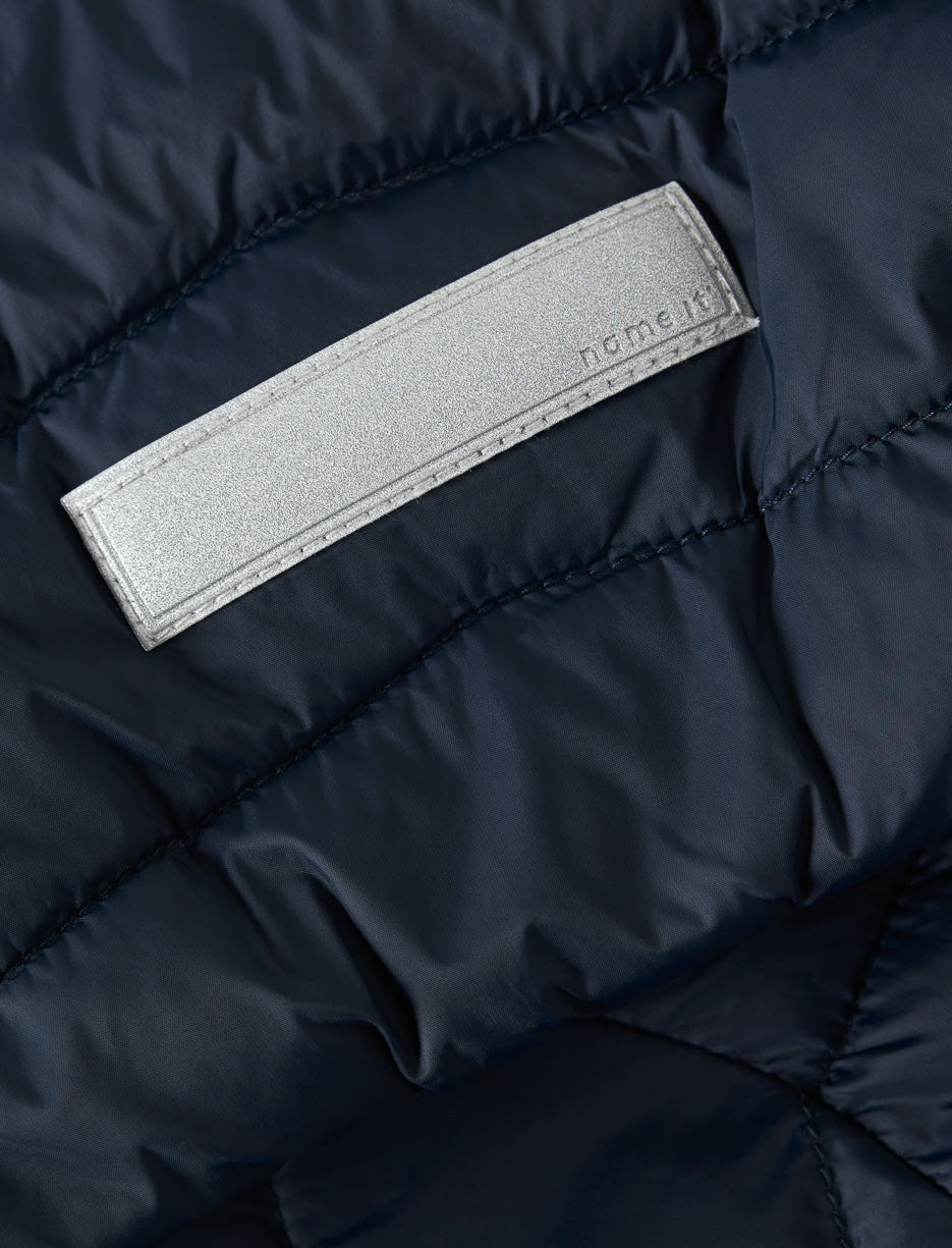 Perfect for cool days, this mid-season quilted jacket combines comfort and lightness. The detachable hood, full zipper, and the reflective detail at the back add both style and practicality for everyday wear.