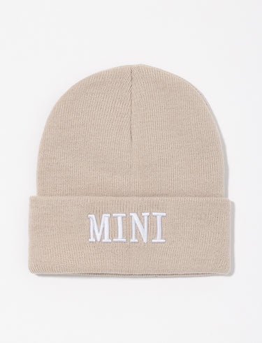 Knit beanie with “MINI” embroidery, perfect for keeping little ones warm while adding a cute and cozy touch.